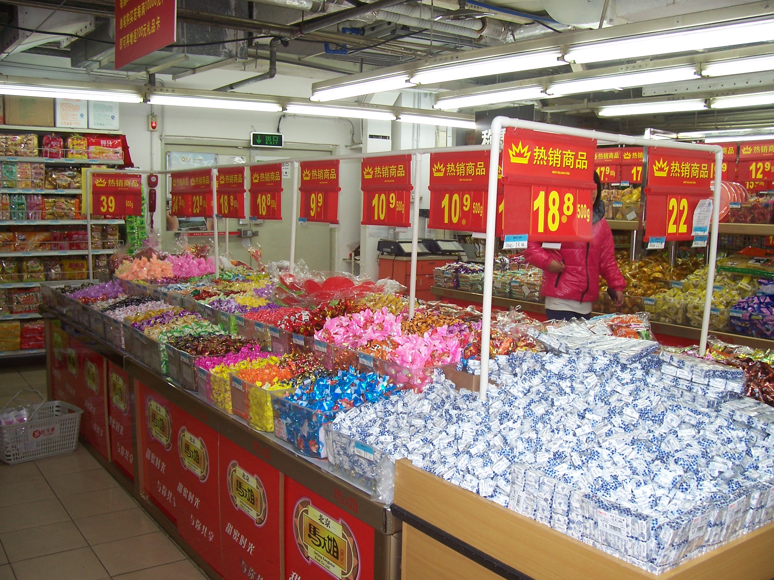 Bins of candy appear for the upcoming holiday. Candy of all kind is always a favorite for Chinese New Year.