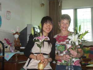 There was a great deal of discussion between the two of us and the flourist which would be the best ones. Lilies aren’t cheap in China, being about $4.00 a stalk, so best to get the ones that will last the longest.