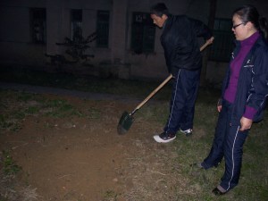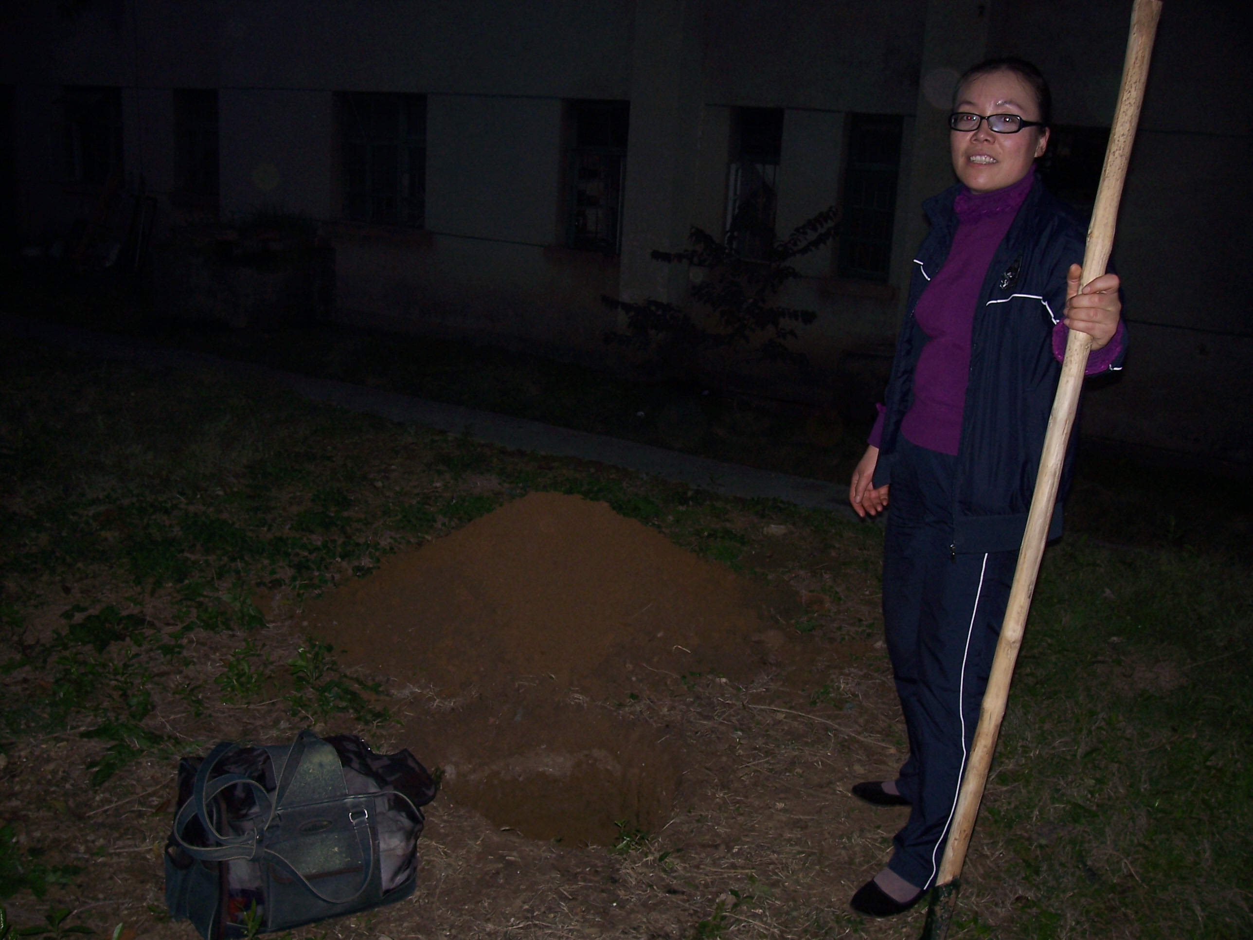 After Dr. Zhang called me to say LF was no longer with us, I left for Nanning to bring her home.  I called our campus leader, Mr. Luo, to ask his permission to bury LF at the school.  He was very kind and said not a problem, only he didn’t want me to bury her in front of the administration building and no monument!
