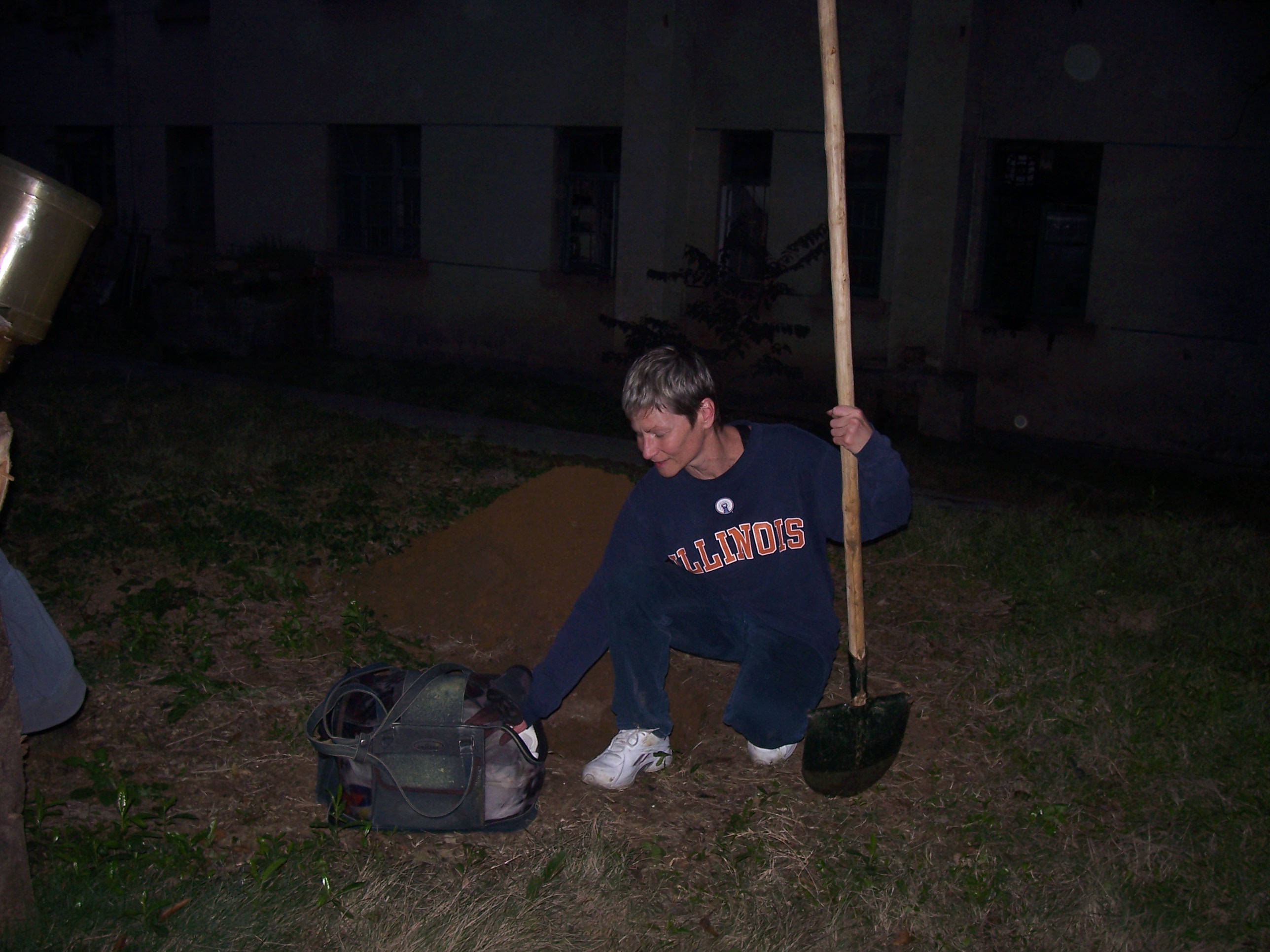 Margaret (shown here) and I took turns digging for LF’s burial.