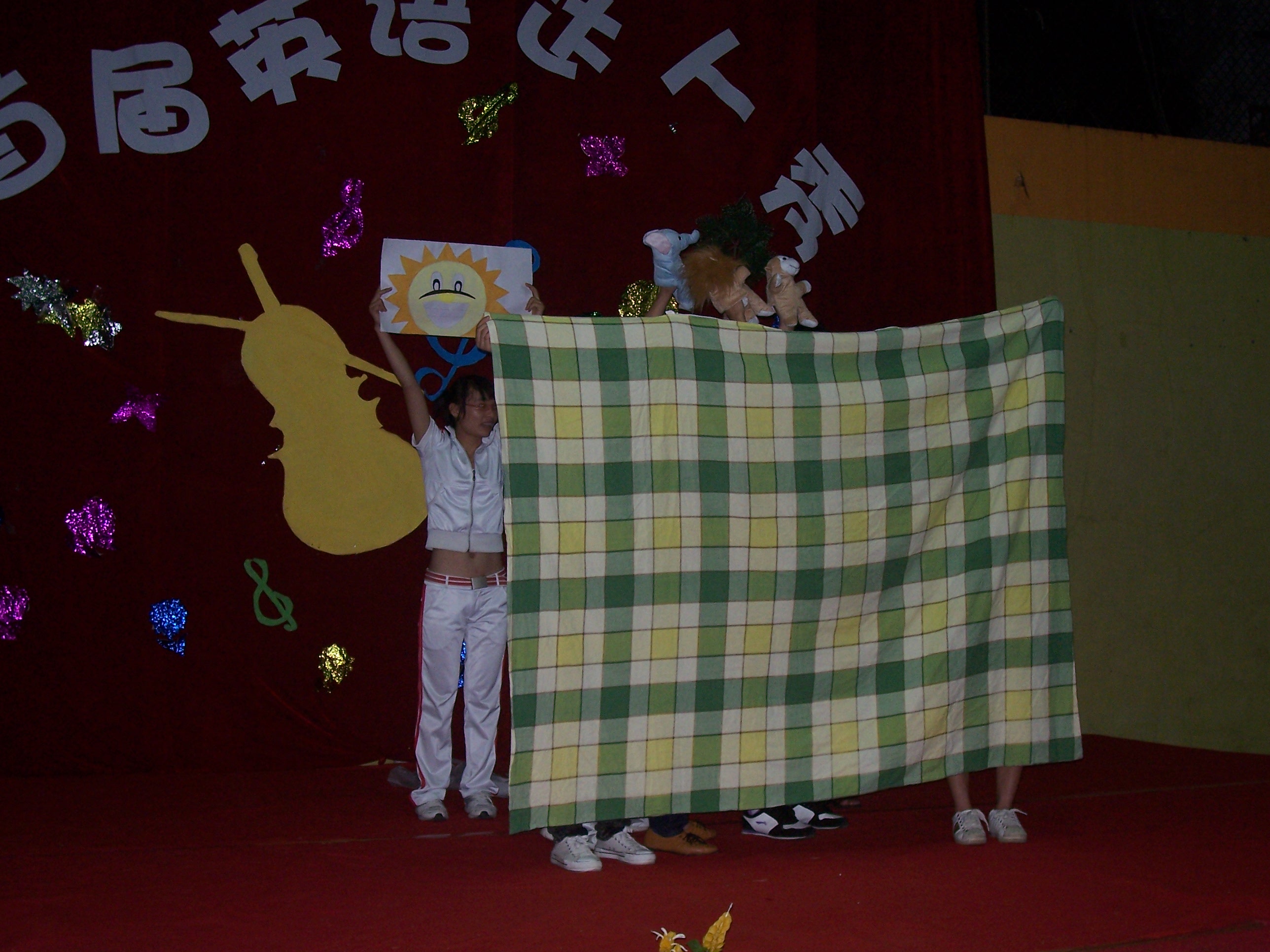 We had 19 contestants, 17 of which were my 1st and 2nd year students. They were to introduce themselves in a 1-minute talk, perform for 3 minutes and then answer 1 or 2 questions from us, the judges. For their performances, we had a variety of acts: skits done with the help of other classmates, songs on our US Top 10 charts and poetry readings accompanied with overly dramatic, sentimental taped music. (A bit much but this is the Chinese style of reading poetry and how most believe English poetry performances should be done. Not!)
