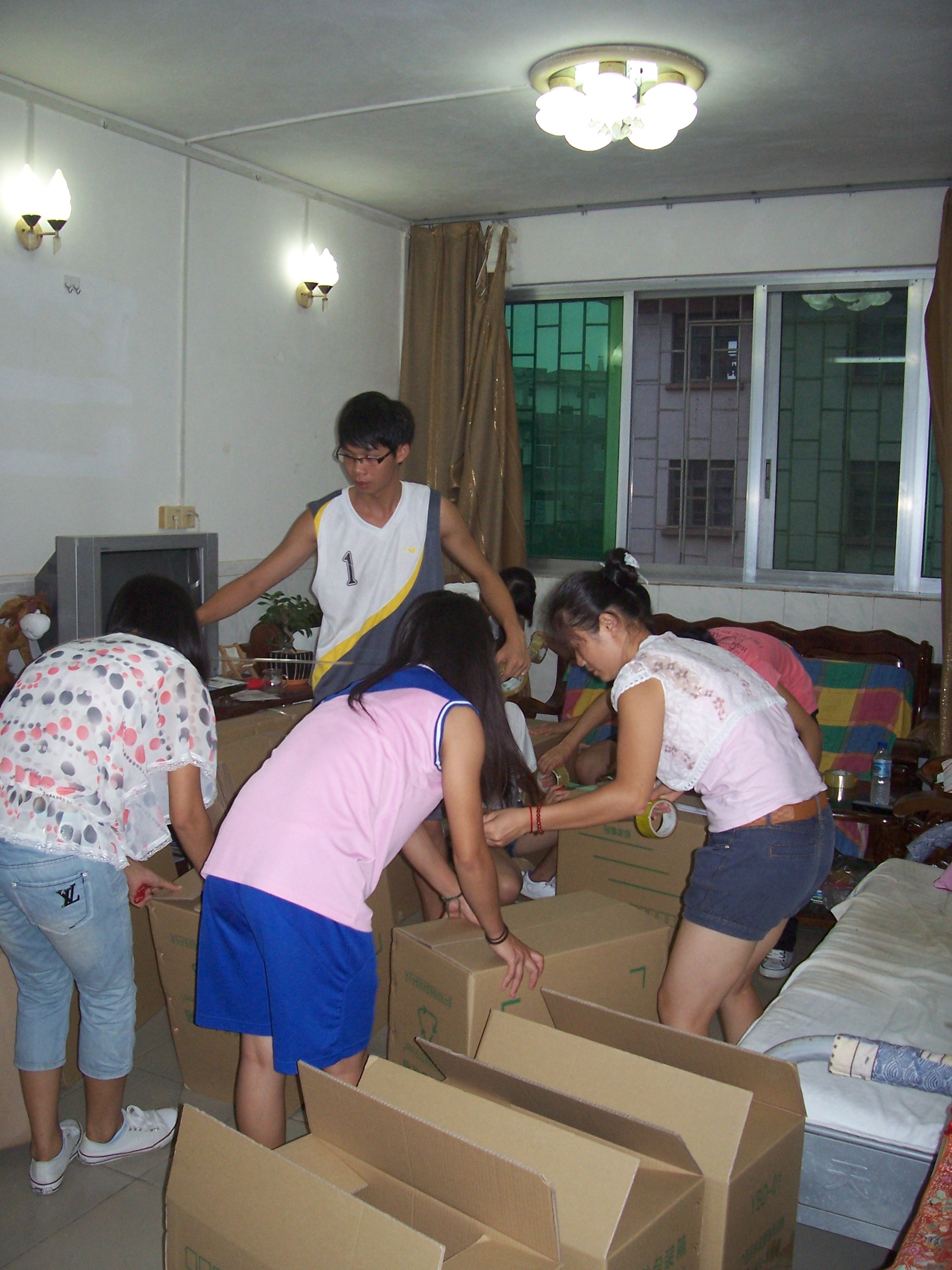 4 weeks ago, I ordered 90 large boxes from our little post office in Longzhou. I knew it would take some time for them to arrive since they had to be ordered from Nanning, the capital city. Sure enough, two weeks later, the phone call came from the post office that I could come pick them up. Mr. Luo, my foreign affairs director, kindly drove me over in his van and we loaded them all in. Of course, they were flattened for transportation purposes. Aside from filling them, the biggest task would be to assemble them.