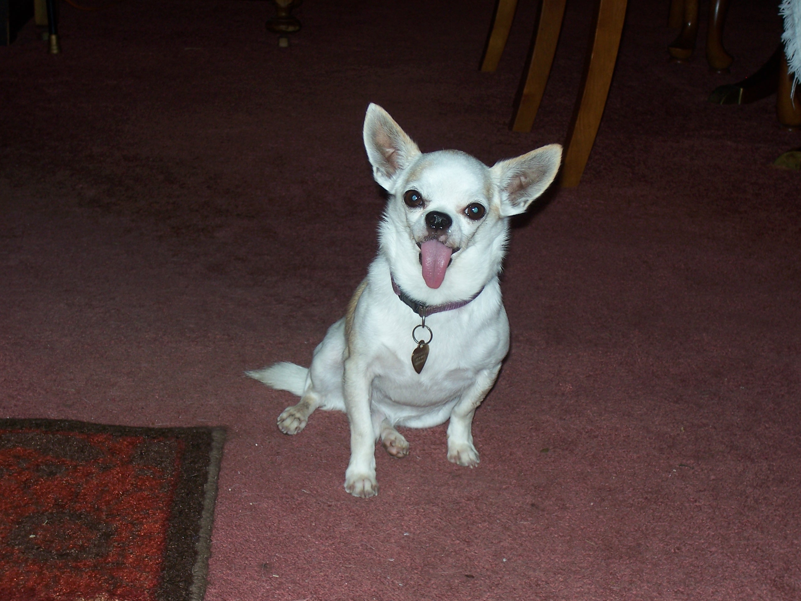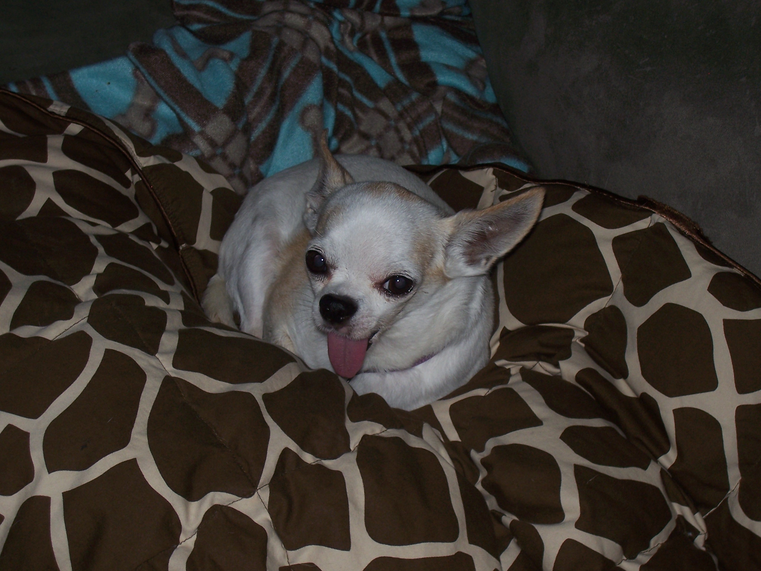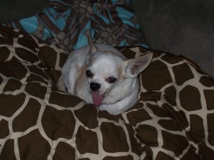 Xiao Lao-lao (shee-ow l-ow l-ow, or Little Old-old) is our 6-pound Chihuahua immigrant which I brought over from China 3 years ago. He was a stray I found on the streets of Chengdu but with a serious disability: He had lost his lower jaw due to a previous injury and had no upper teeth. His emaciated body proved he was in need of a lot of love and care, which I gladly bestowed upon him for 4 months. After searching among my Chinese friends for a suitable home, I had no takers. Thus our little Chinese immigrant found his way to Marshall, Illinois, where he has a home with my parents.