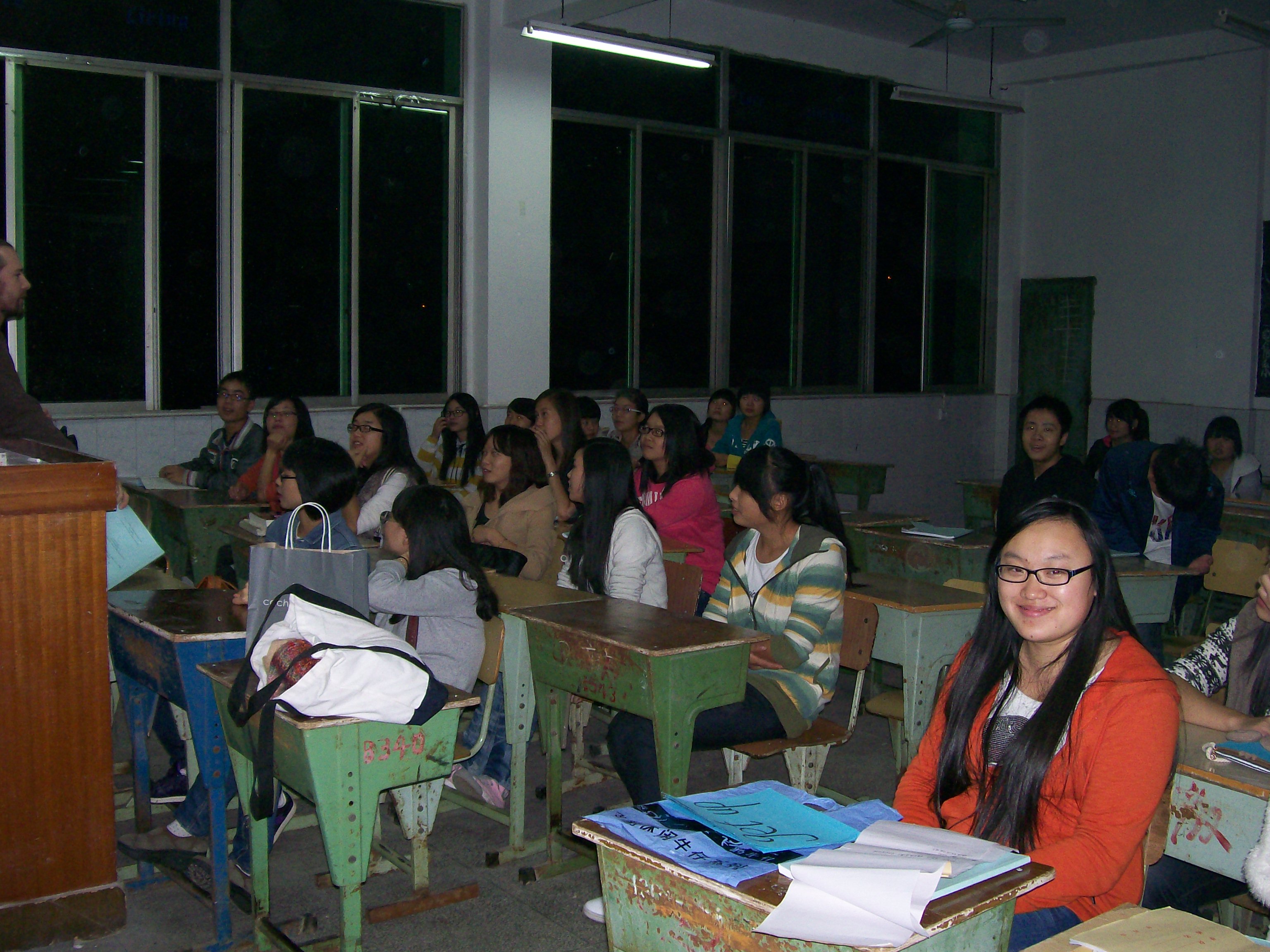 This evening, our topics center around countries you’d like to visit and favorite Chinese cities. The novelty of EC has already started to wear off. A few hours ago, I entered a classroom with a much smaller crowd that before. Quite manageable and those participating were the truly spirited ones who wanted to improve their language skills, not just tag along because their friends were there.