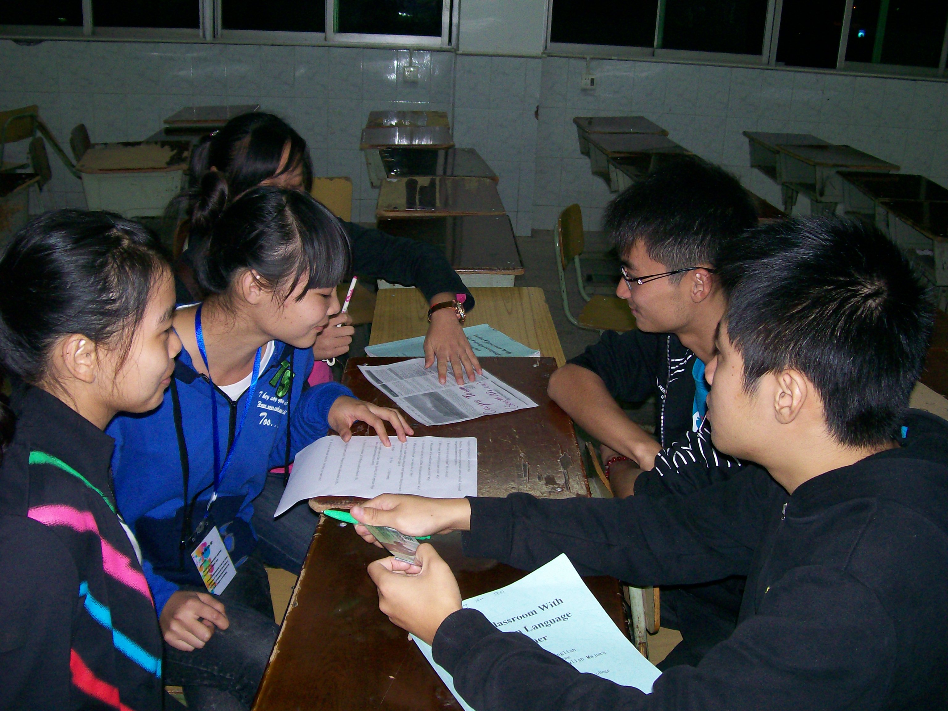 Yet our students are not as savvy in the ways of how English Corners work. They crave guidelines and leadership. Thus we scheduled our first EC in the classroom, a more familiar, comfortable setting for our students and a place where we could better organize them.