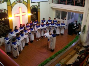 After worship ended at 11 a.m., I began talking to “John” Lu, our choir director, about the upcoming Christmas celebrations. The choir wants to sing “We Wish You A Merry Christmas” in English but it’s a bit difficult to get the rhythm down and the words. John was enlisting my help so we are planning a time when I can join them at practice (Thursday evening) to give my expertise.