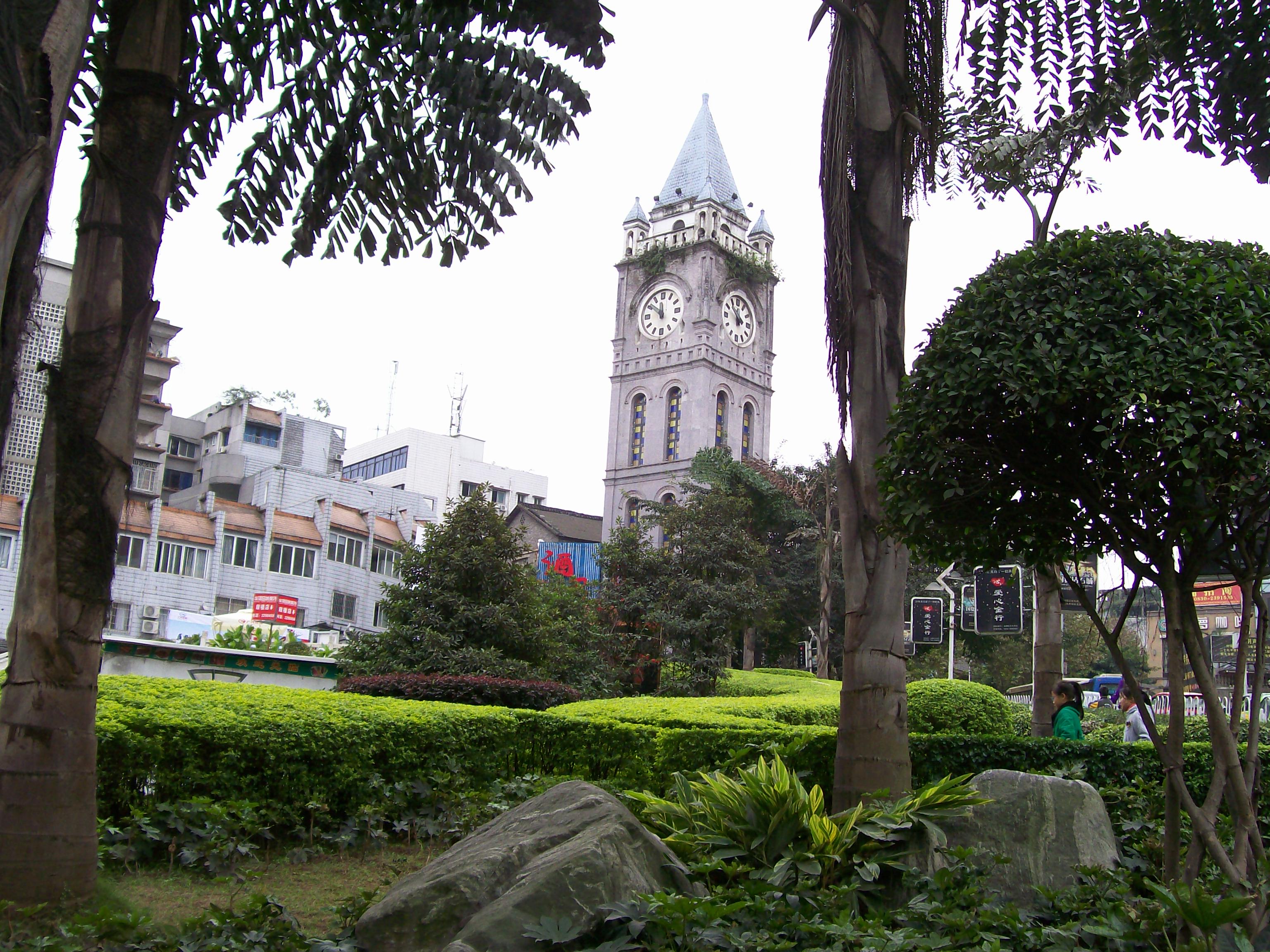 It was built in the 1930s by the Japanese army that landed here when they invaded Sichuan. It is a tall clock tower, still in use today and a landmark for the city. A strong reminder of the cruelty done to the people of China by the Japanese at that time period.