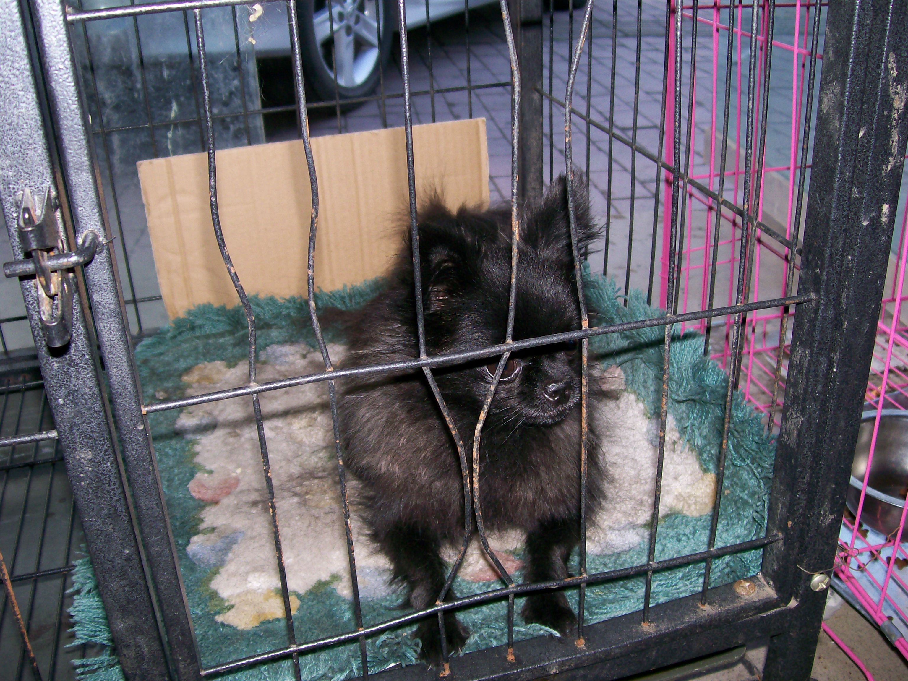 This poor canine was lying down, whining in misery, while in an iron cage next to Cute-cute. He had a thick chain around his neck so the staff could pull him in and out of his enclosure when it came time for treatment.