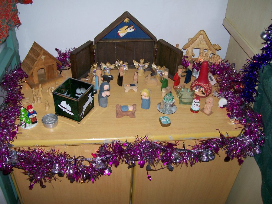 Creche scenes from around the world: USA, South America and China.