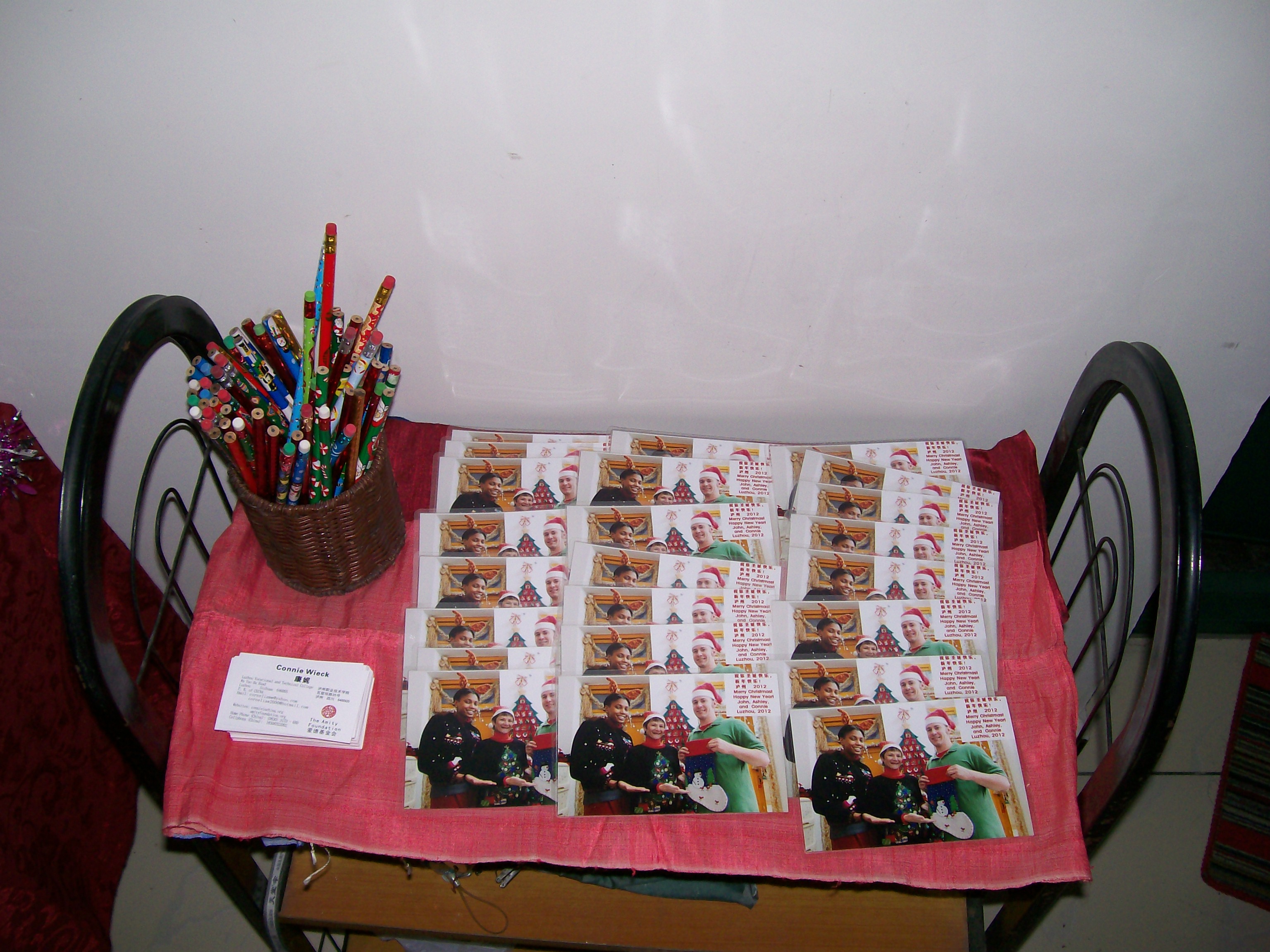 Gifts for the teachers: holiday photo, Christmas pencil and my namecard.