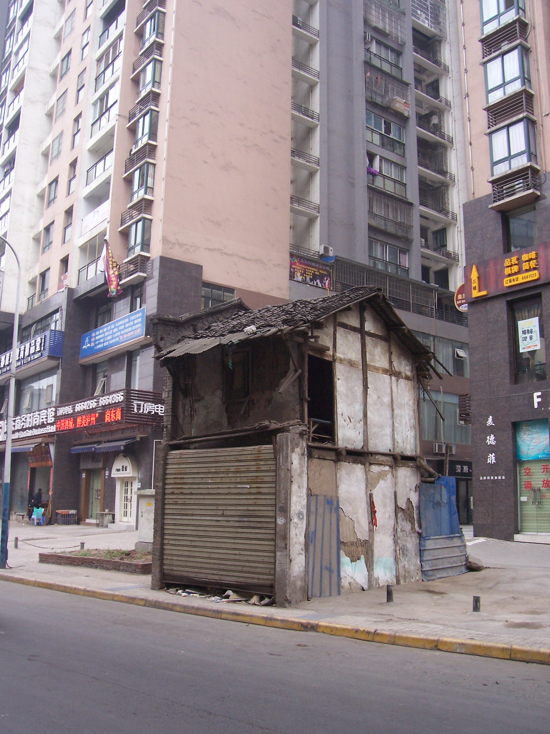 Remnants of old China still remain but are disappearing at a rapid speed. I pass by 100-year-old structures, standing oddly off by themselves, while the rest of the world rises high about them.