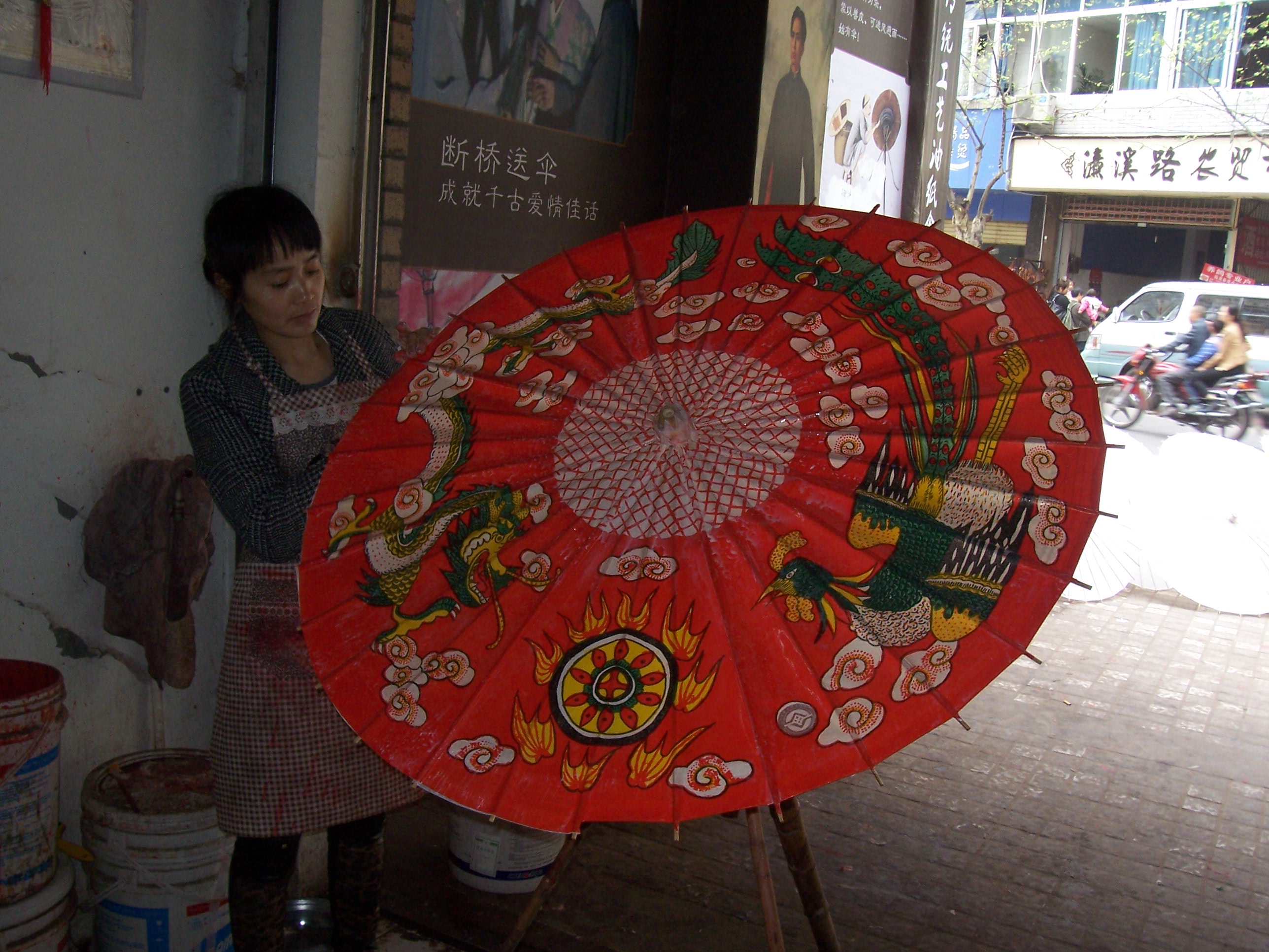 Even approaching our 1900’s building, the alleyway that once barely allowed cars to pass through now boasts not only better made market stalls and wide tiled walkways but traditional Chinese craft shops. Wood carving and bamboo umbrellas are the drawing point for tourists and those who are interested in purchasing gifts for friends. These were not here 3 years ago. The umbrellas are especially festive, lining the outside sidewalk while waiting to be strung and papered by their artisans.
