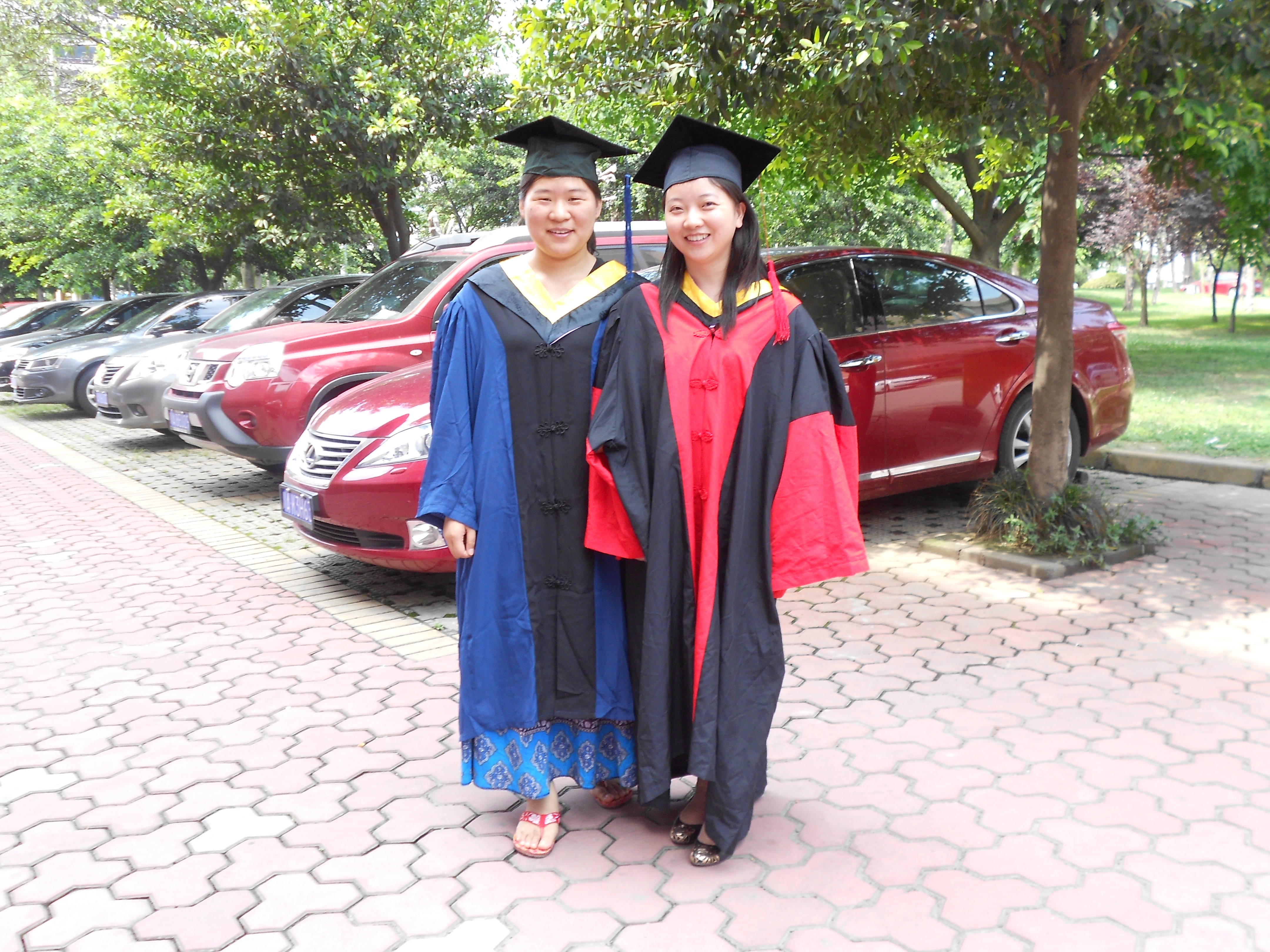 Throughout the school, clusters of classmates posed in front of buildings, on tree-filled lawns, on building steps, seated at the school’s lotus flower ponds and around the campus gates to record this auspicious day.