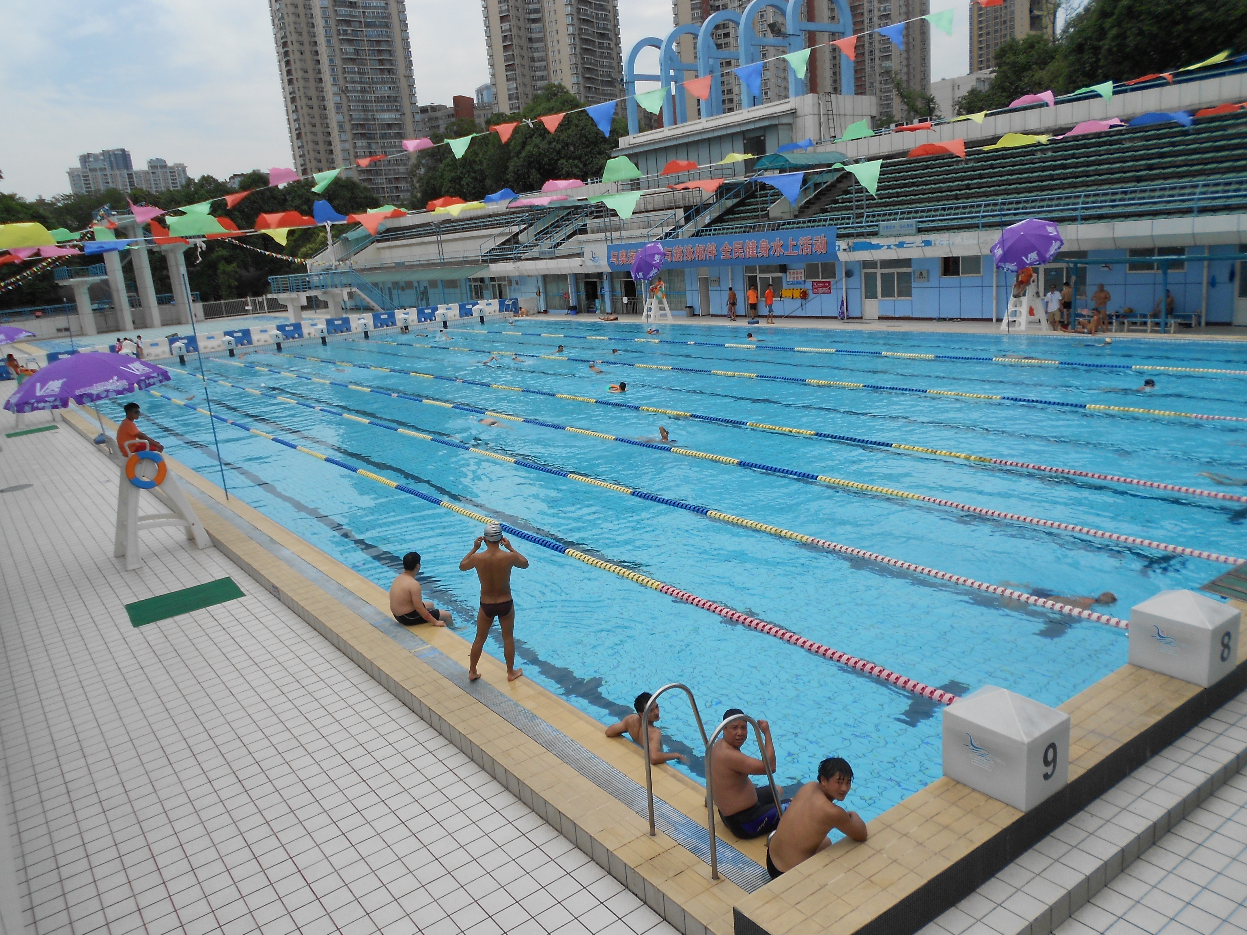 Daily jaunts to the Meng Zhui Wan Swimming Pool had me meeting up with all my swimming buddies from the winter. This swimming complex has 4 outdoor pools, a water park and an indoor pool as well. The indoor pool is going through repairs during the summer so we are all forced outside, into the sizzling rays of sunshine, for our lap swims.