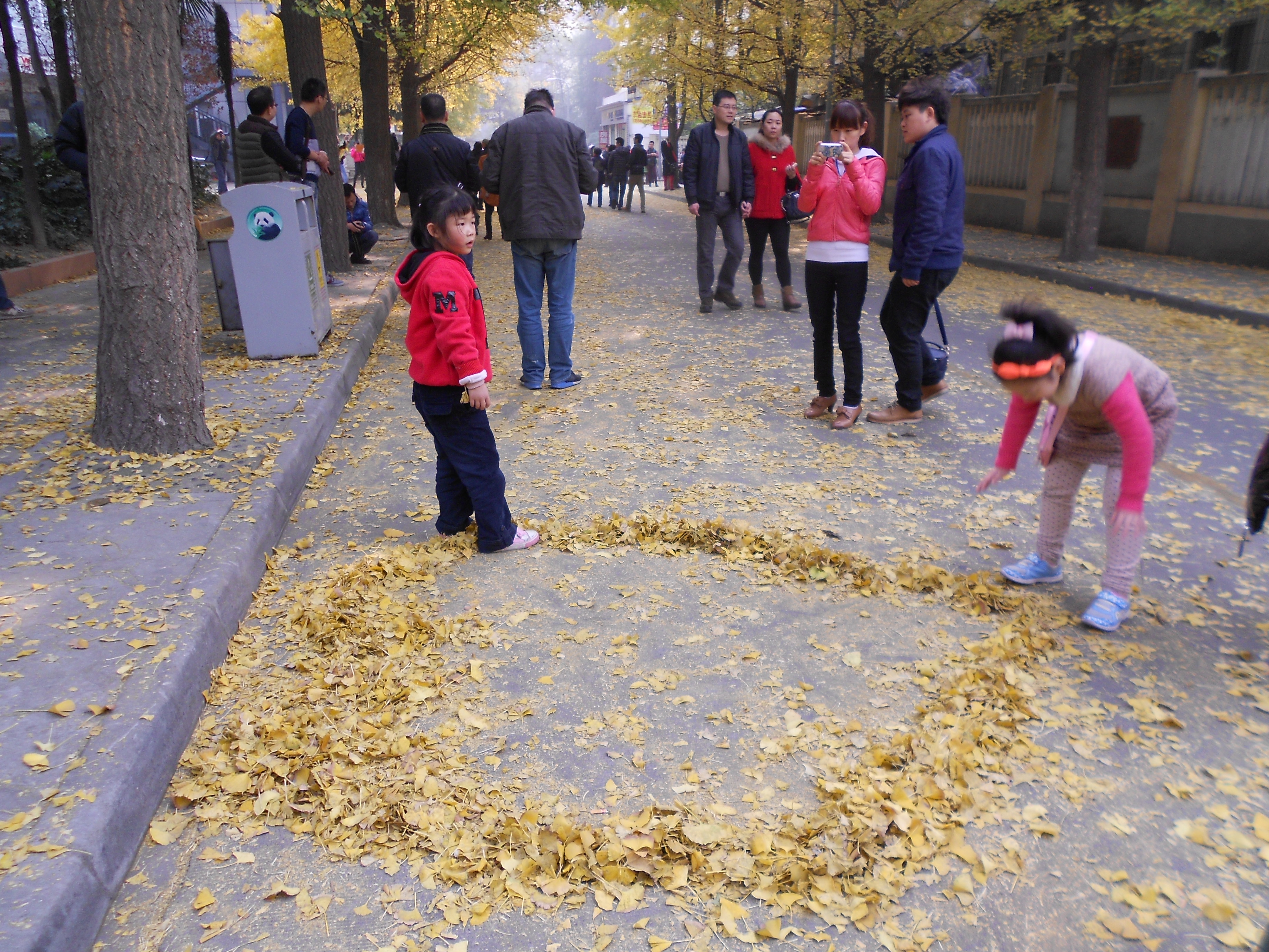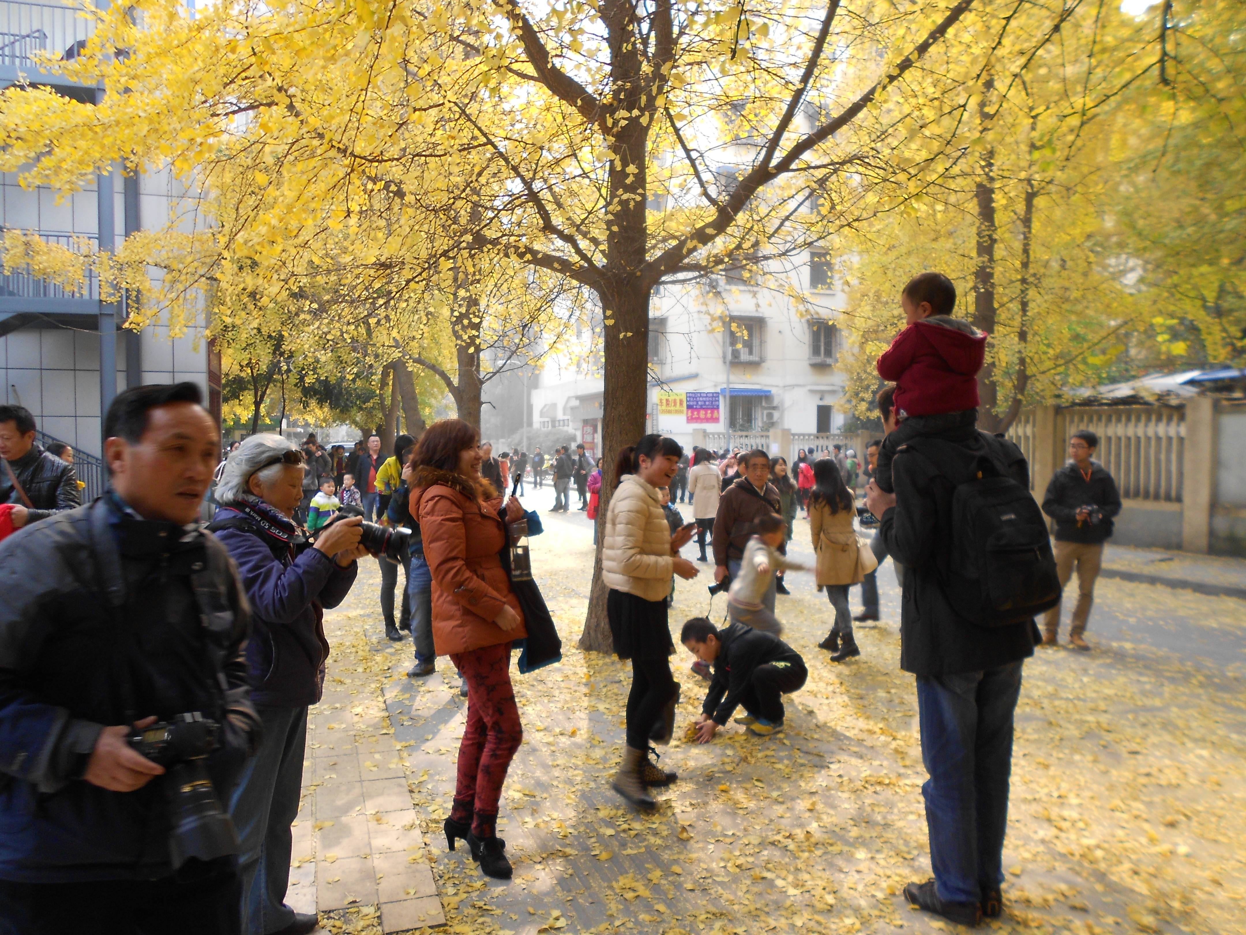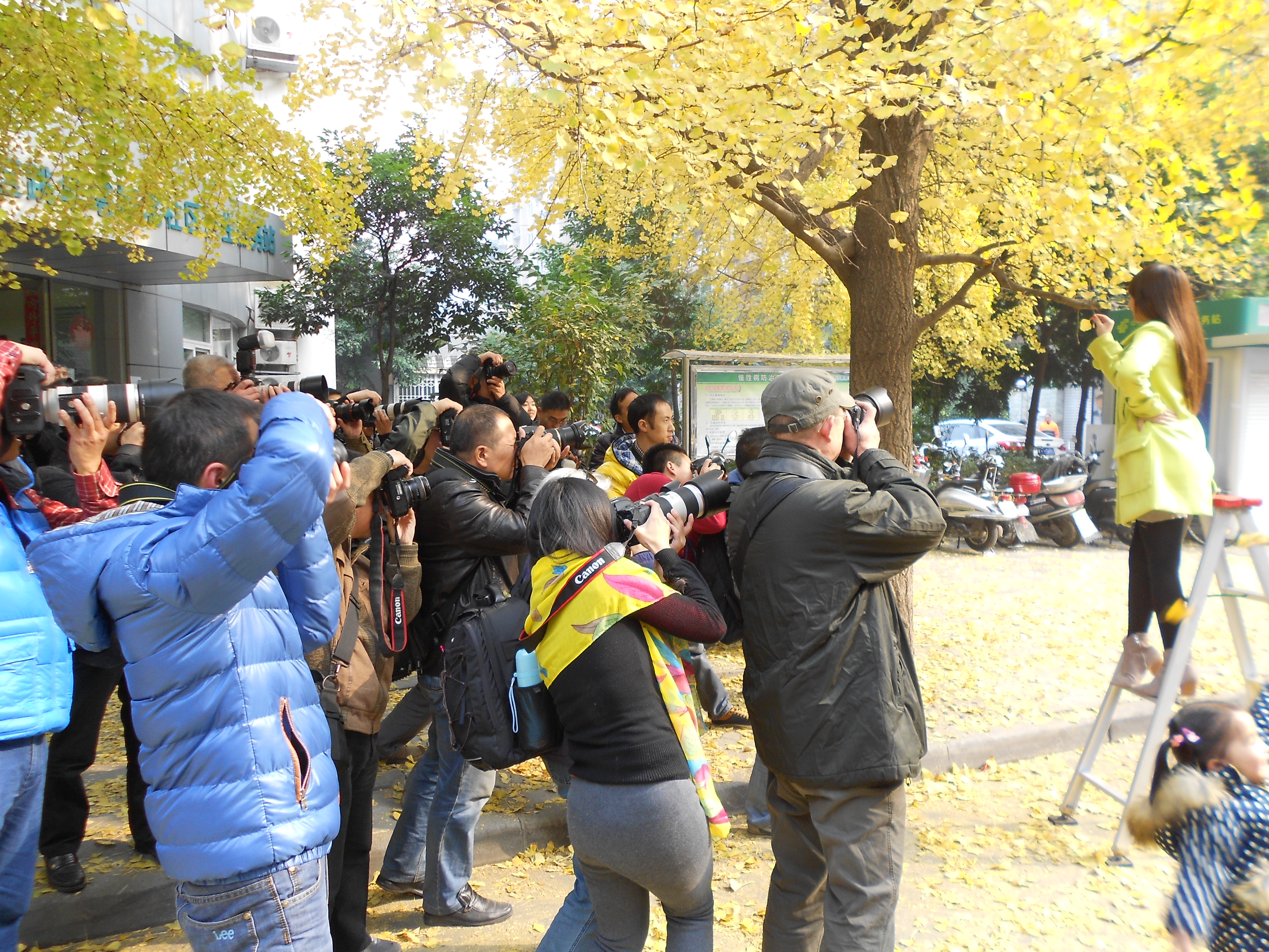 Couples out for their wedding photos during weekends are always seen in Chengdu. The autumn leaves made posing all the more special.