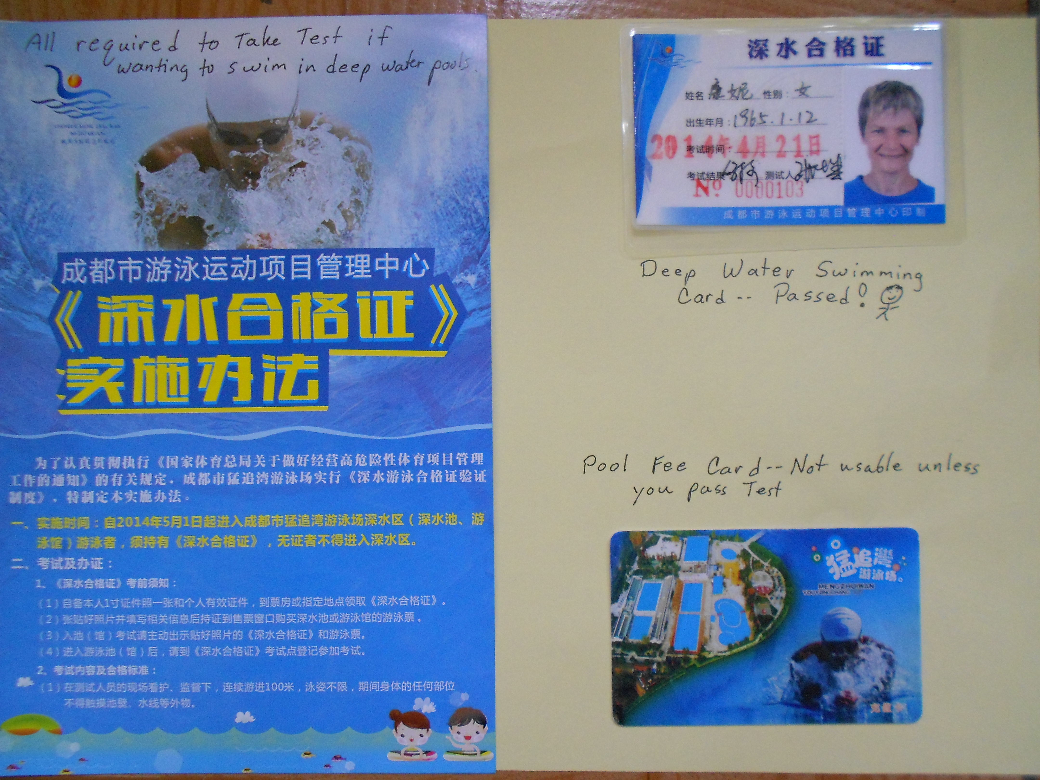 Despite my fame as a swimmer, I was very proud not to be given any special treatment. I jumped right in along with my Chinese pool mates to take my test as mandated.