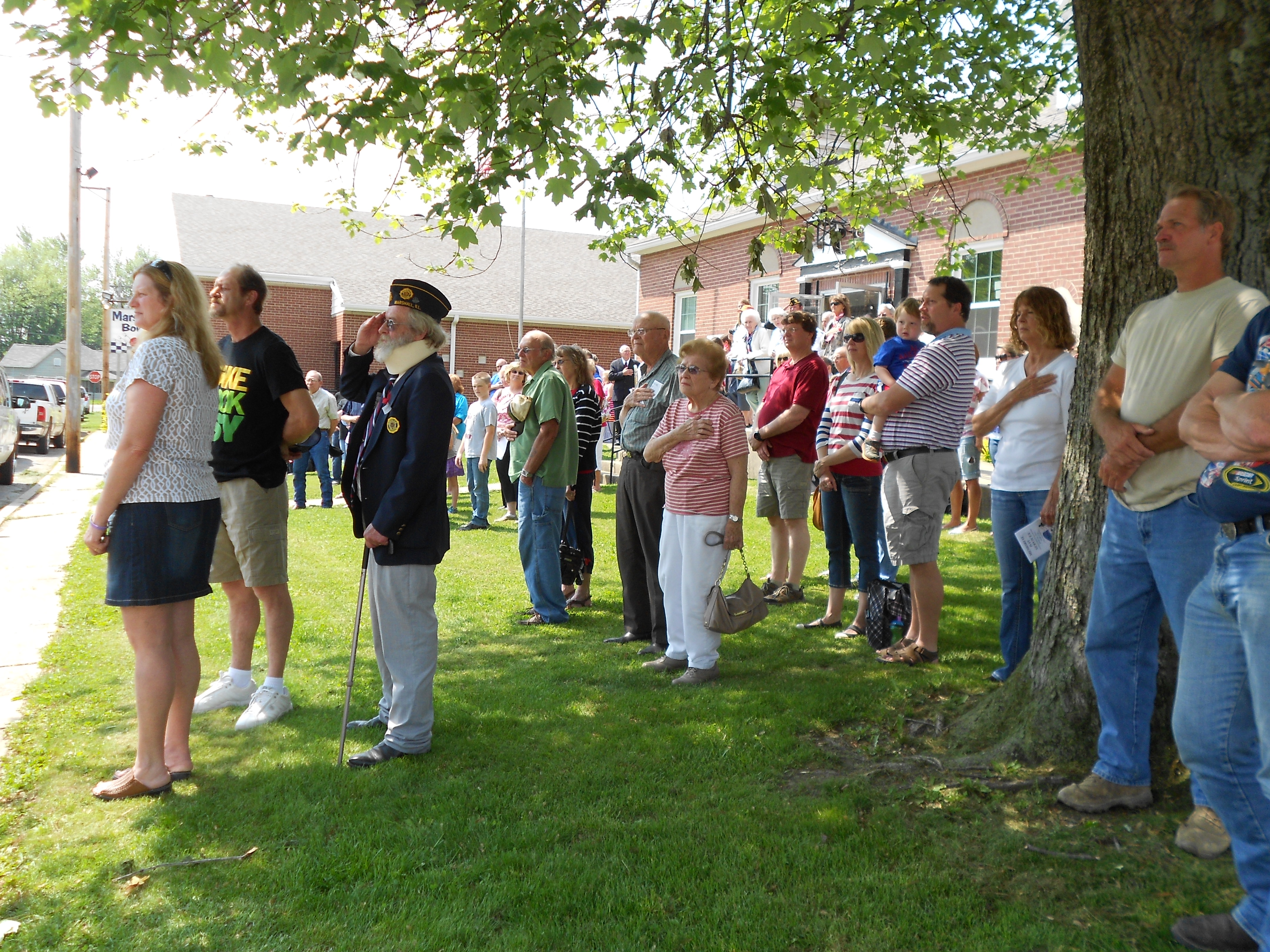 Our Marshall Memorial Day ceremony always includes the selling of paper poppies at the entrance, programs which outline the events that will take place (numerous marches played by the city band, posting and retiring the Colors, Pledge of Allegiance by audience members, introductions by the Legion commander, a main speaker, symbolic toast to those who have fallen, presentation of Quilts of Valor to area veterans, and gun salute) and a free dinner afterwards served by American Legion / VFW and the lady Auxiliary members.