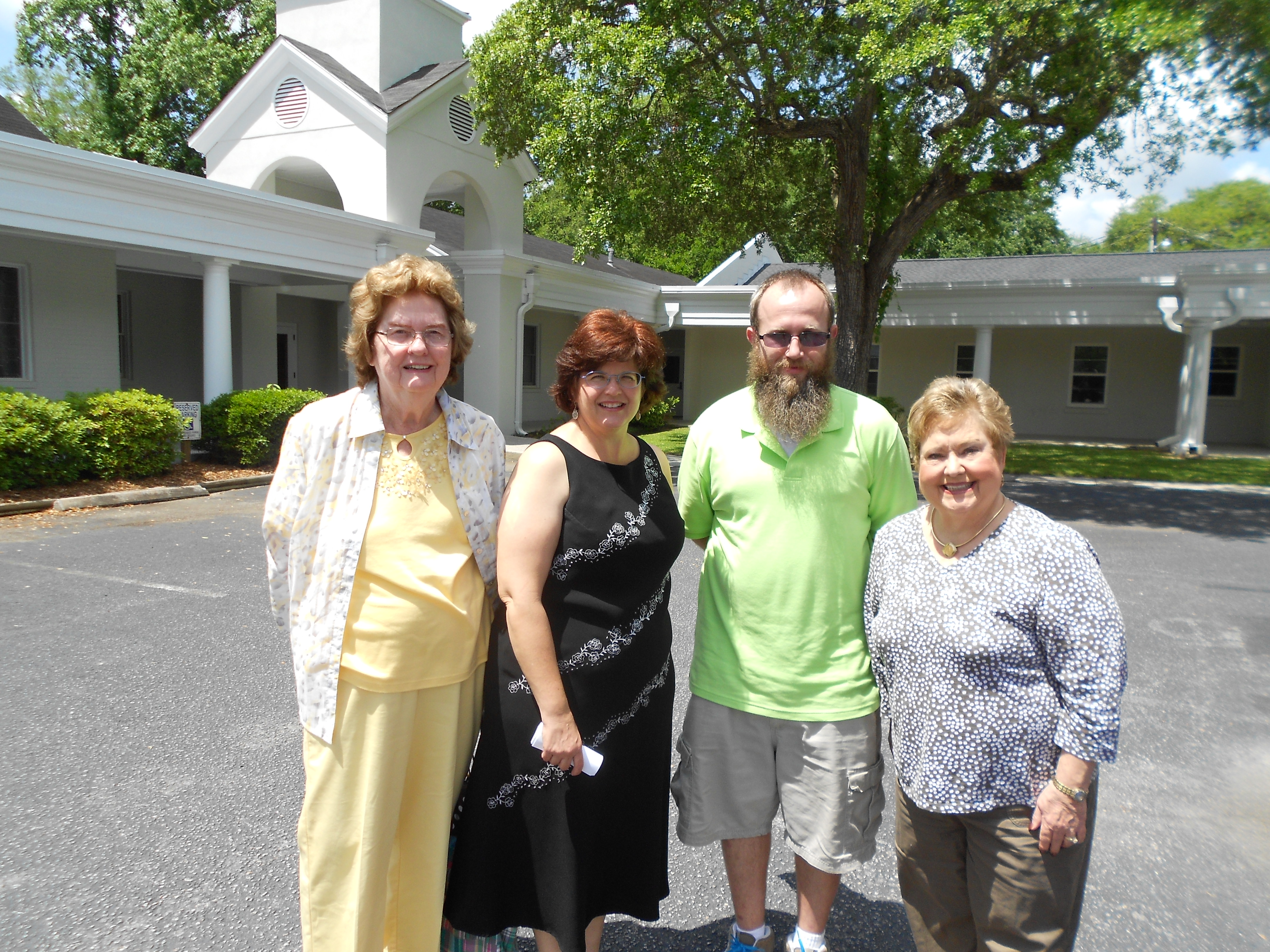 “Welcome, Connie, to St. Marks!” (left – right: Loyal Connie Wieck circle member Barbara Shaw, Pastor Scarlett, youth director Rich, Susan Brooks, whom I stayed with)