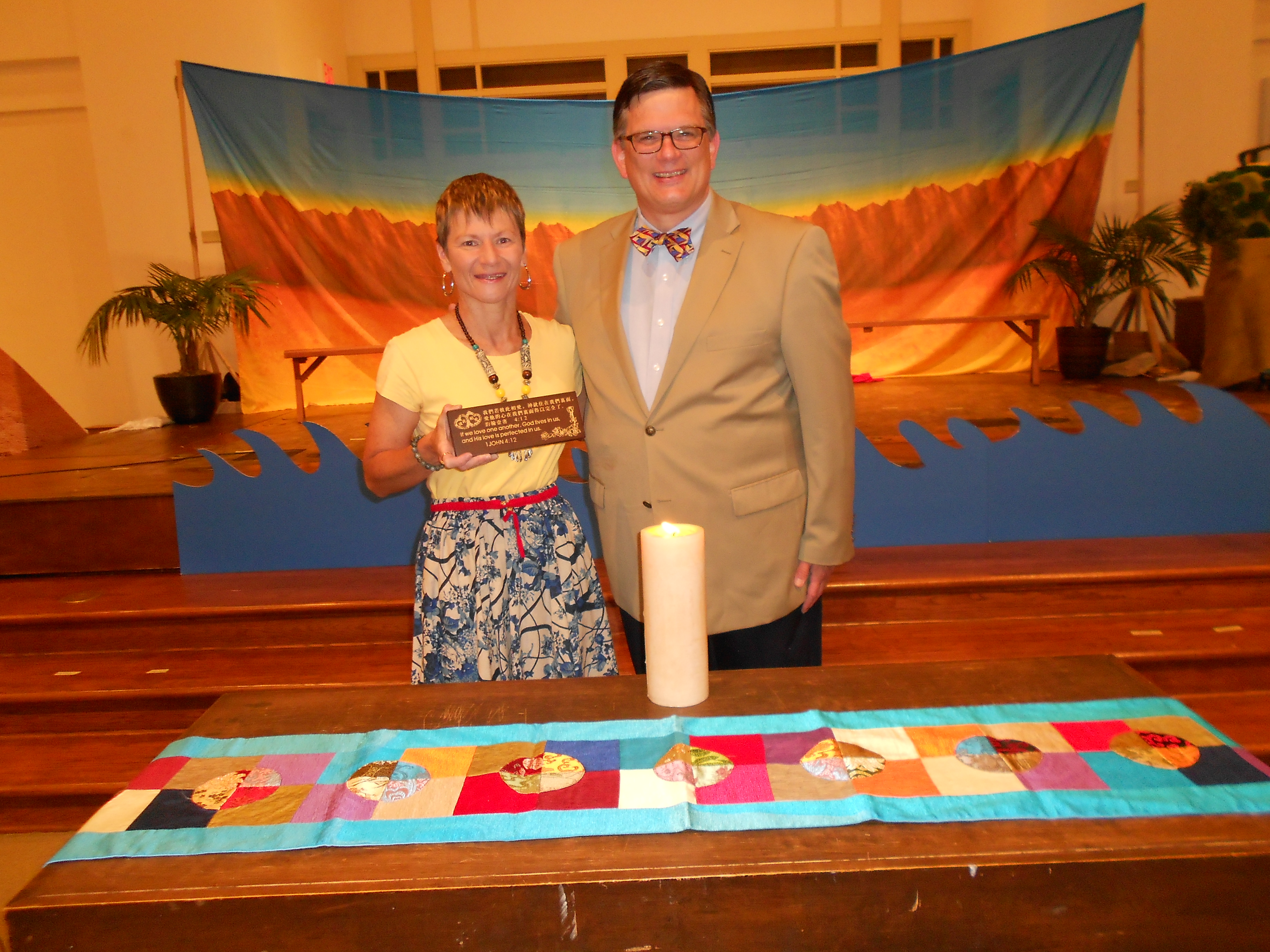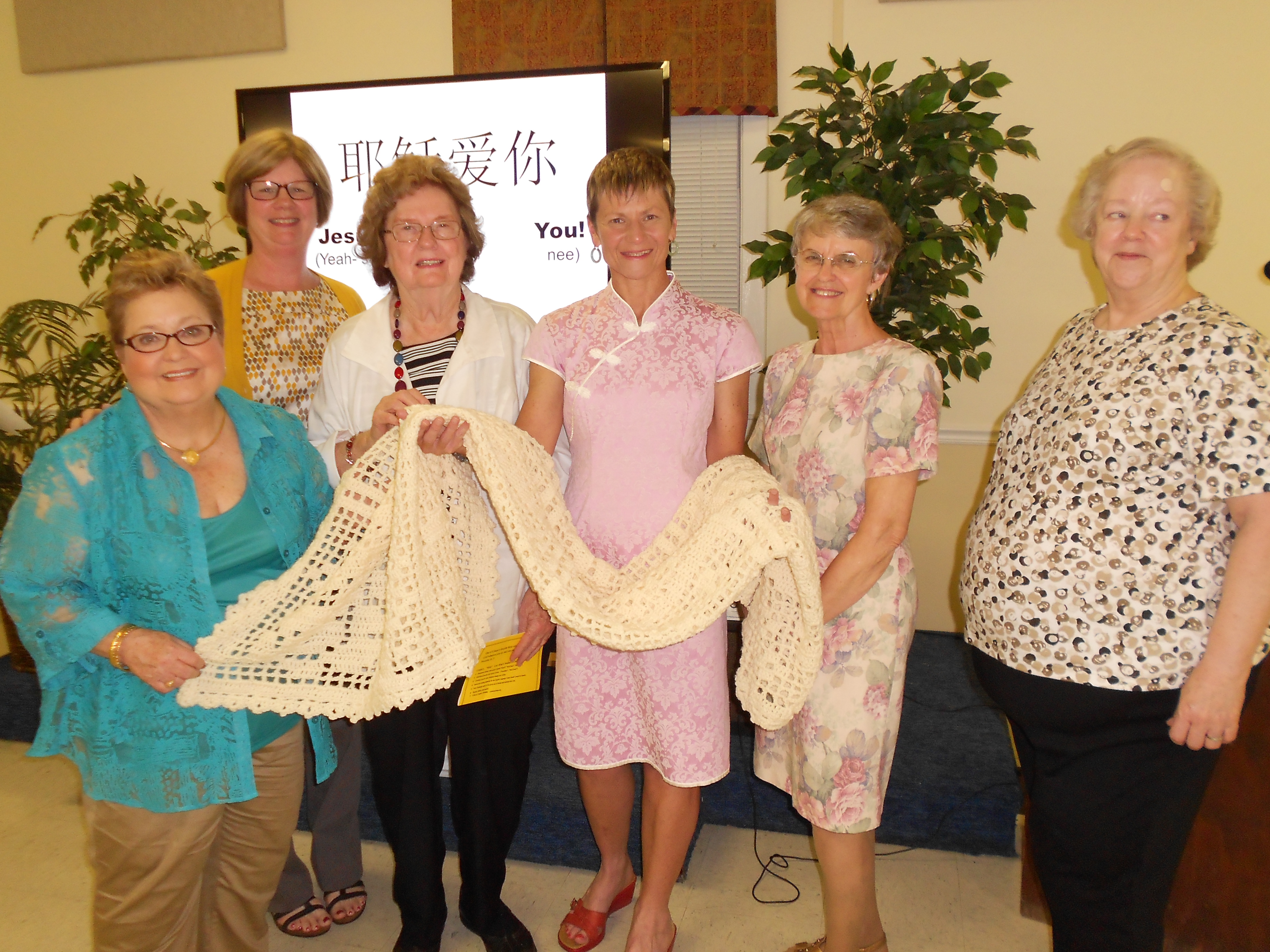 I was especially touched by a lovely afghan, made by one of the circle members (Jackie), which was prayed over and sent with me as a gift from the church. In return, I left a Chinese runner to be used as an altar cloth for special church worship services or occasions.