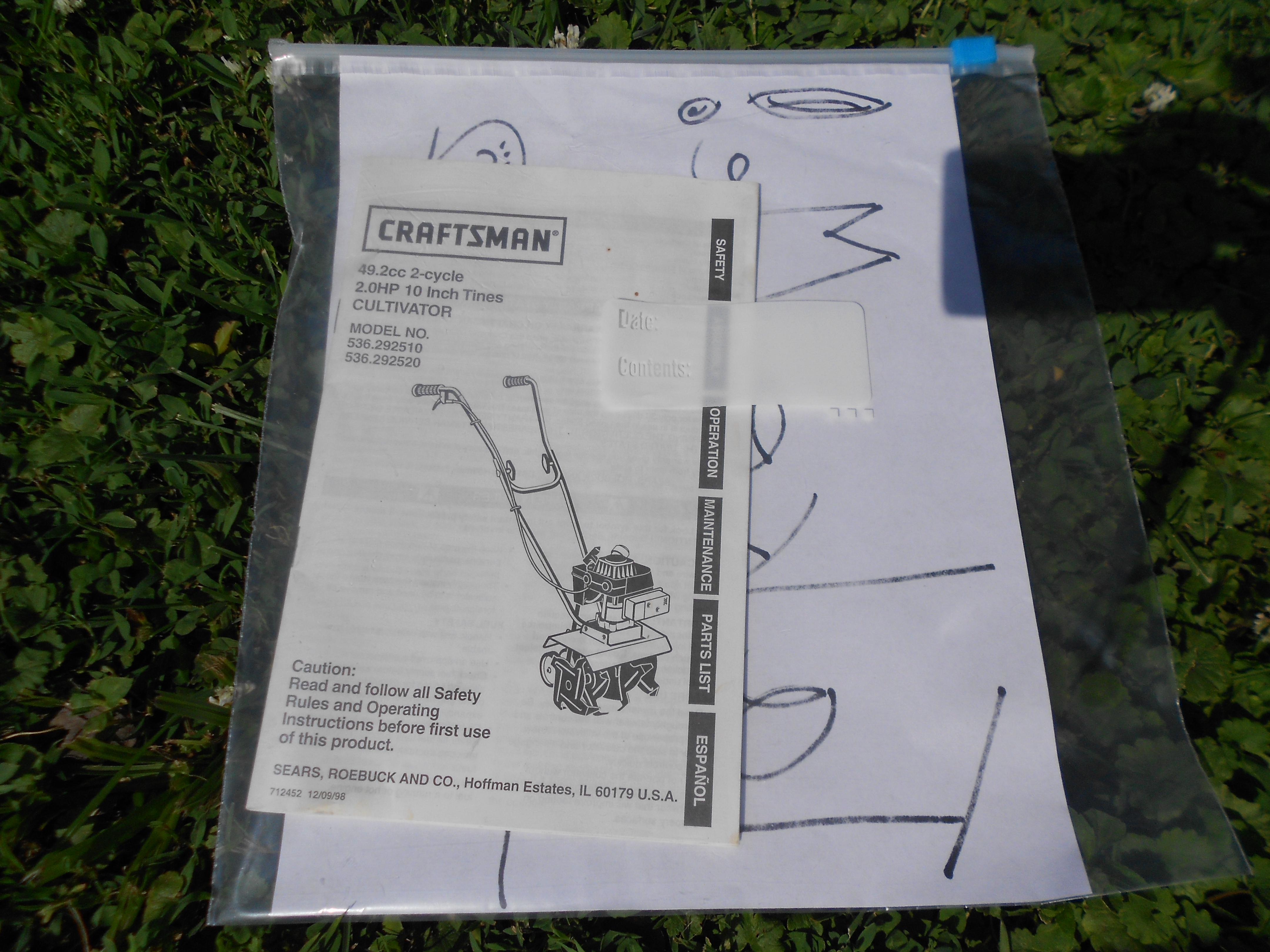 My mom and I have just now been on a mission while sitting on the back deck: Waiting to find out how many minutes it takes to get rid of a tiller cultivator.