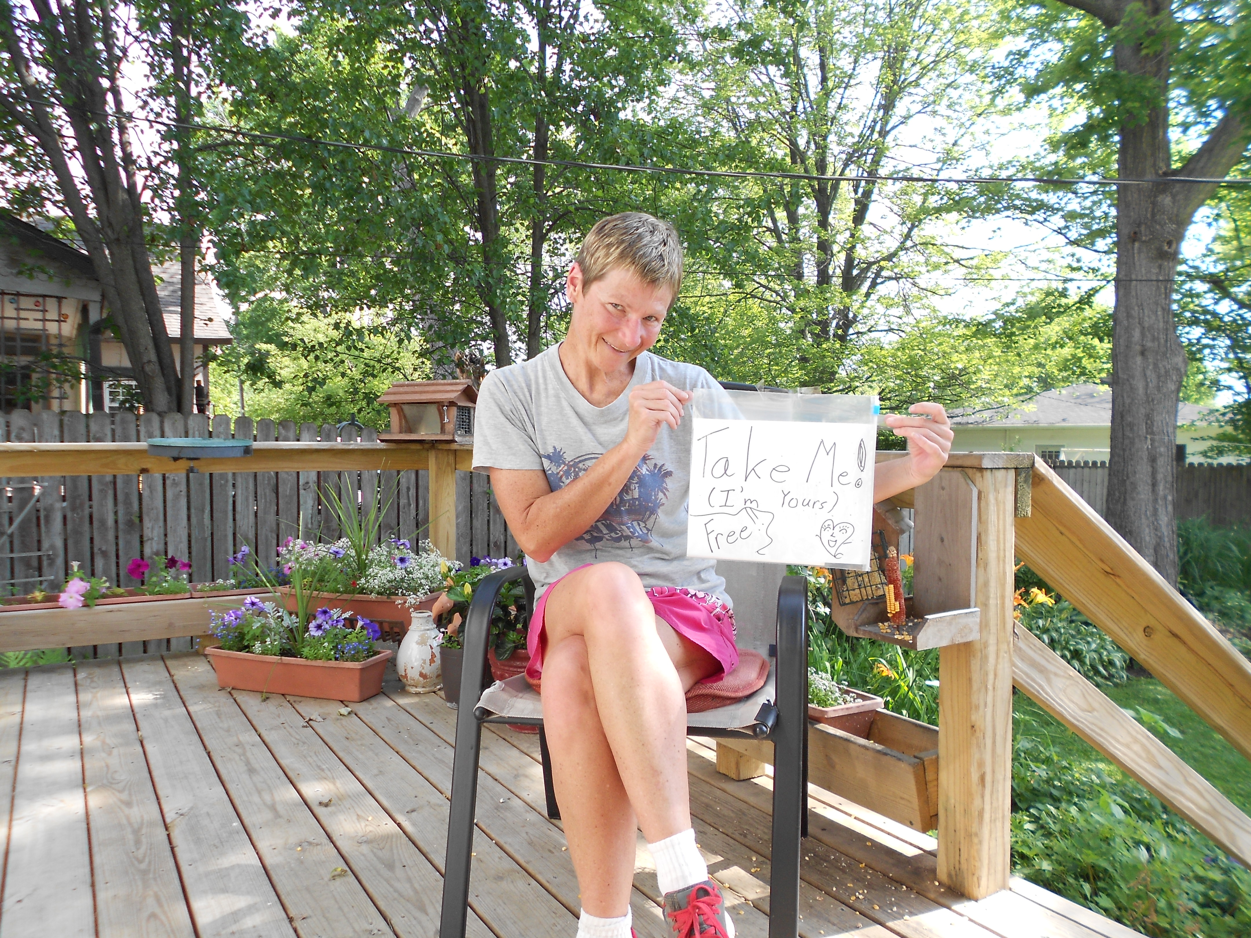 “No, no, no! I’m trying to clear out the garage, not clutter it up. Just leave it out in front with a sign and it’ll be gone in no time. We have drive-by bargain hunters who would love to have that thing.”