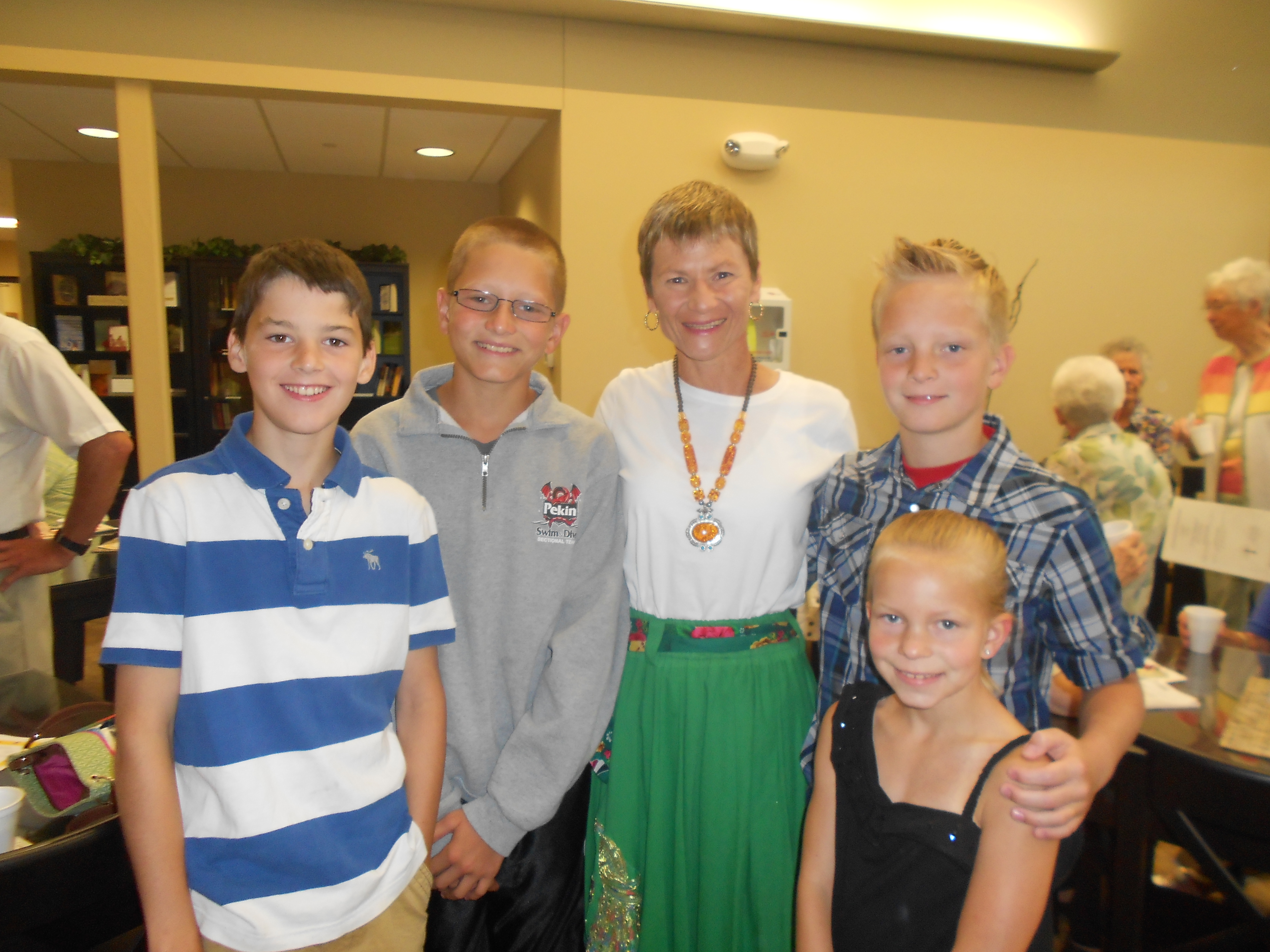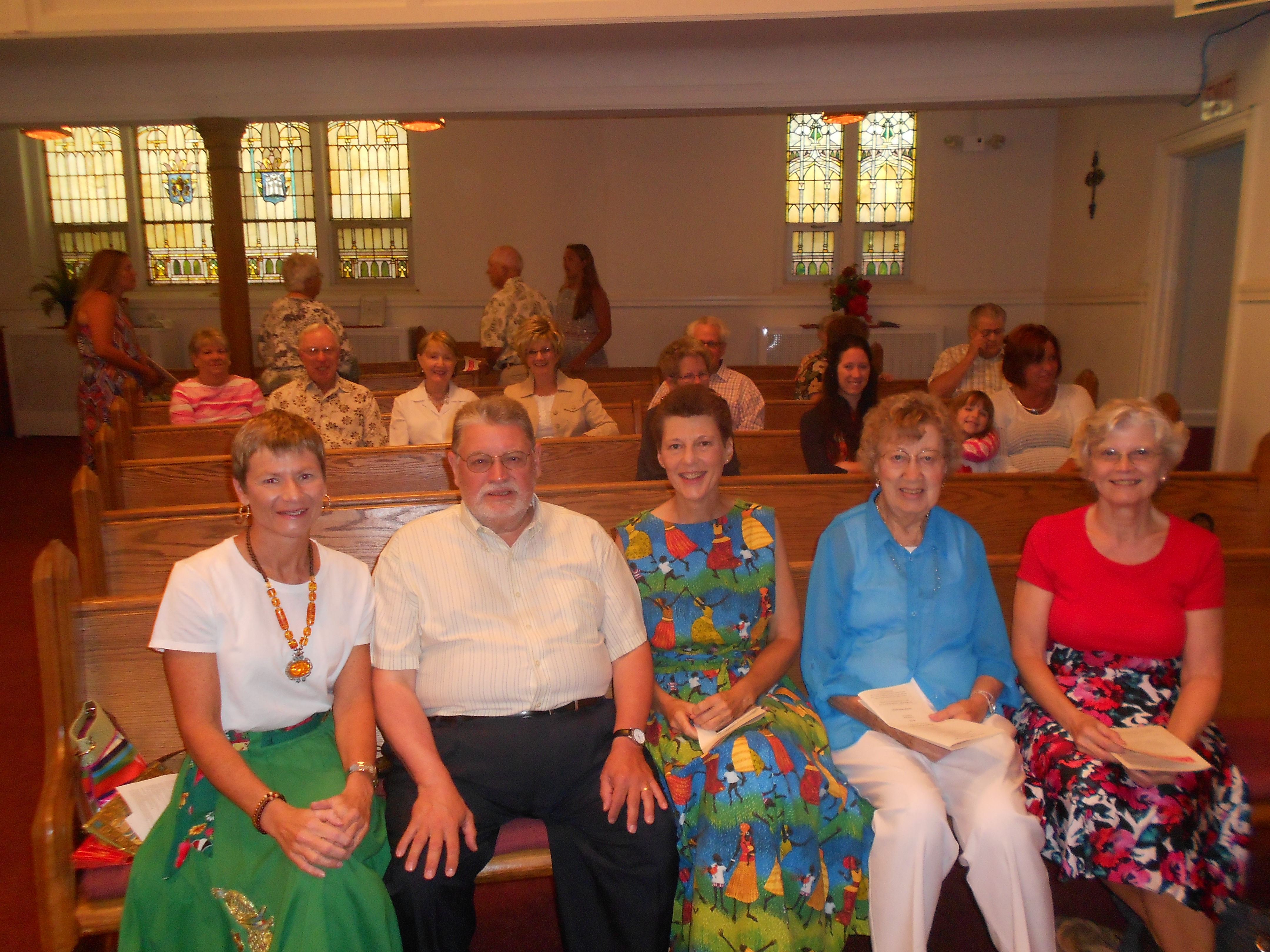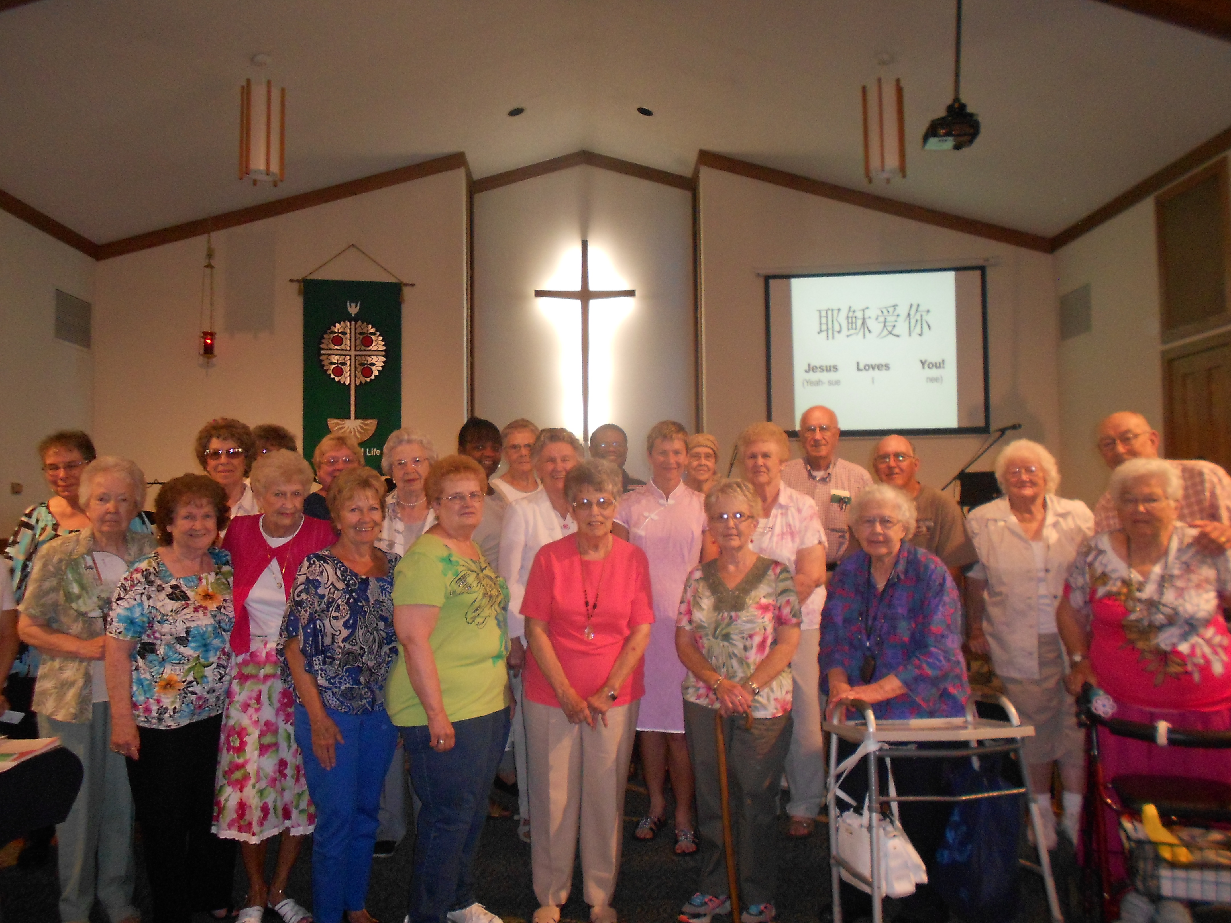 Pekin Grace UMC 8:15 a.m. service. Me with Pastor Gary Ford with my good friend Sally Morris (former UM missionary to Africa) and her mom