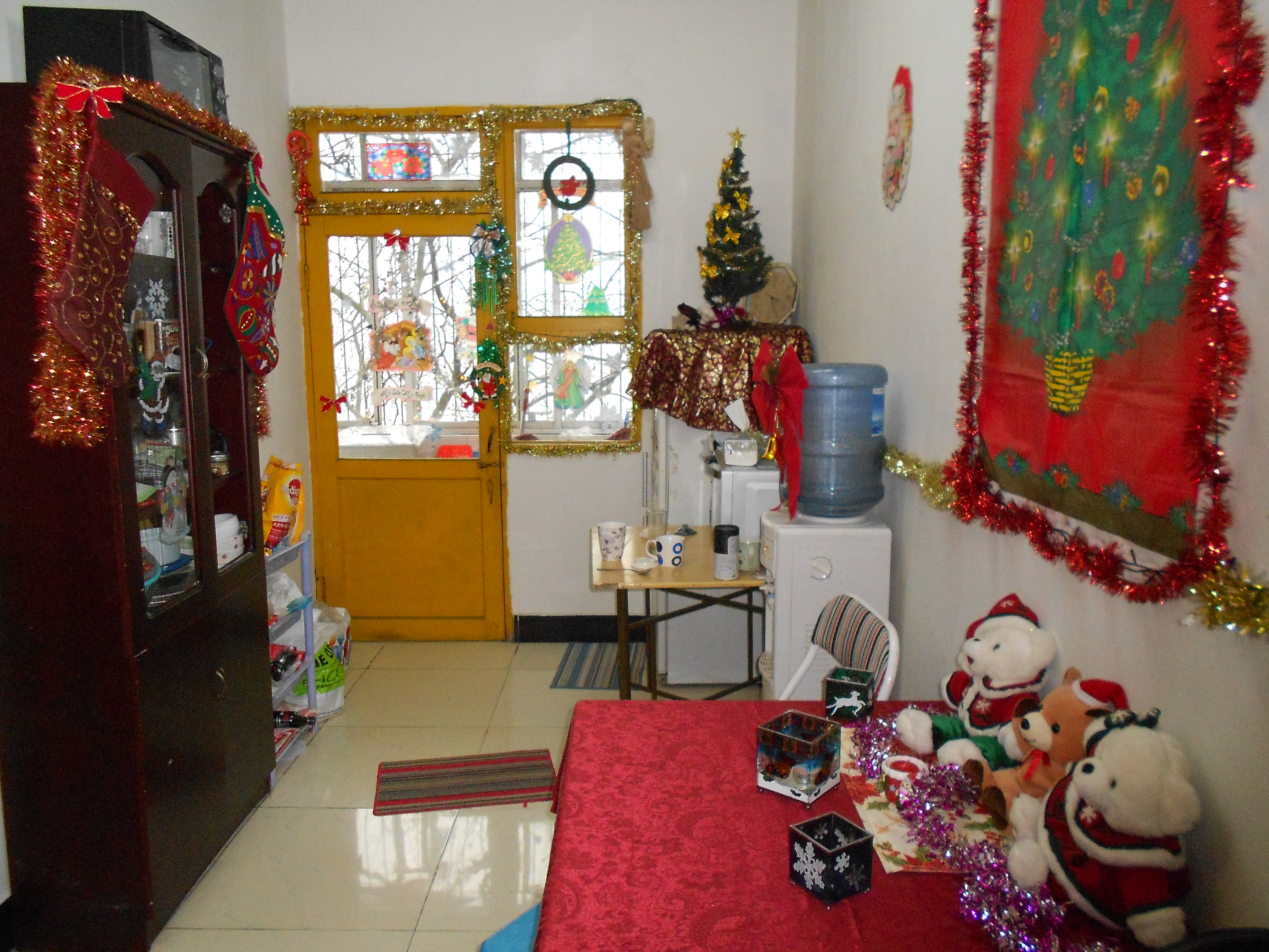 As we walked the 10 minutes to my home, I prepared them for the grand showing. “You will see so many things for Christmas,” I told them in Chinese. “It’s really beautiful and special.” I was so excited to have my first Chinese guests see my decorations that I think my enthusiasm was contagious. By the time we hiked up to the 3rd floor, my key in the lock, their faces were eagerly and anxiously awaiting what was within.