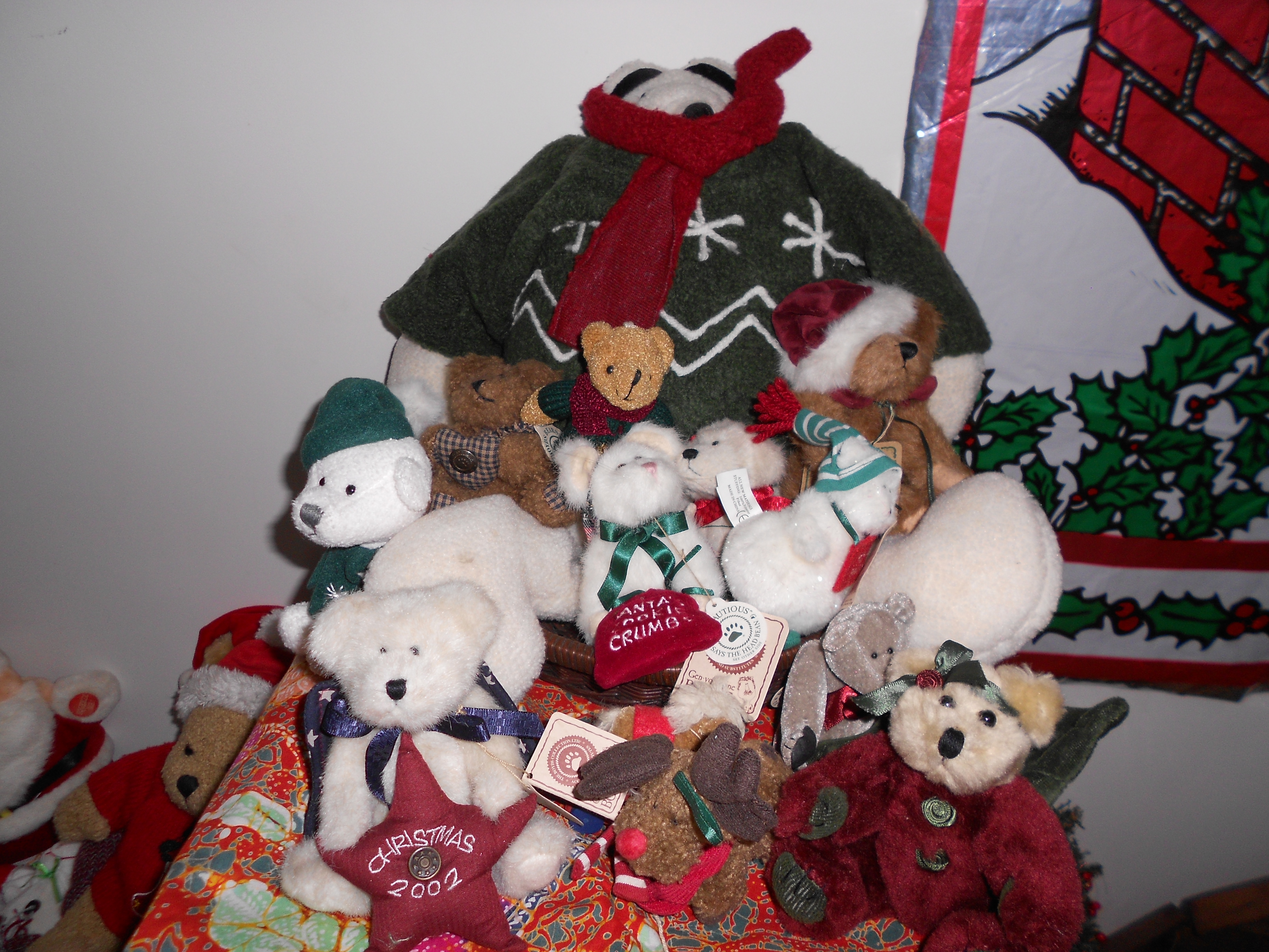 Stuffed animals, battery-operated toys, desktop trees, colored lights, tinsel roping, colorful Christmas stockings, miniature creche scenes, figurines, votives, wall hangings, Santa hats and reindeer ears – Welcome to Connie’s winter wonderland.