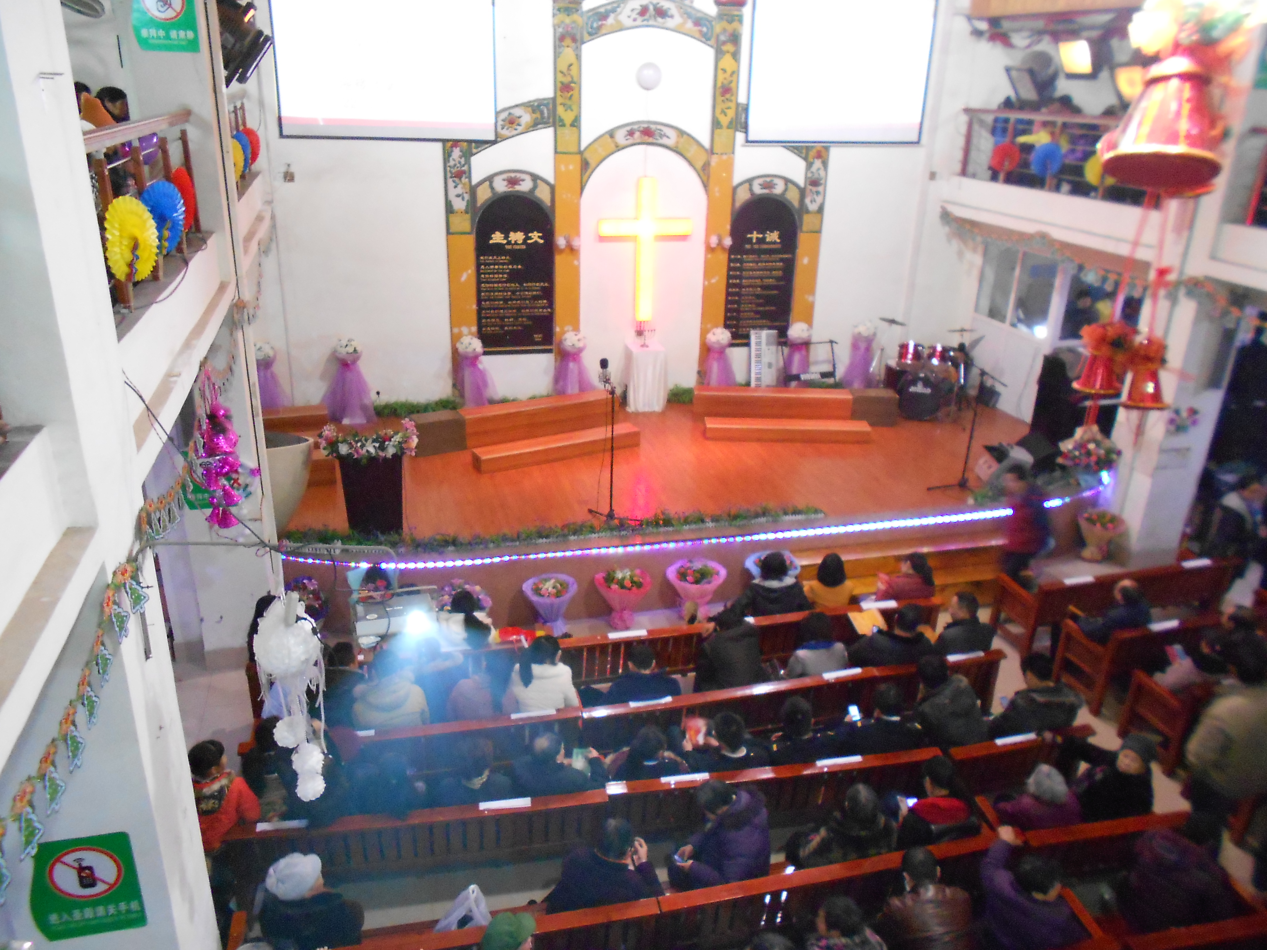 - Getting ready for Christmas Eve worship: The Luzhou Protestant Church (Our sanctuary, the original 1913 decore)