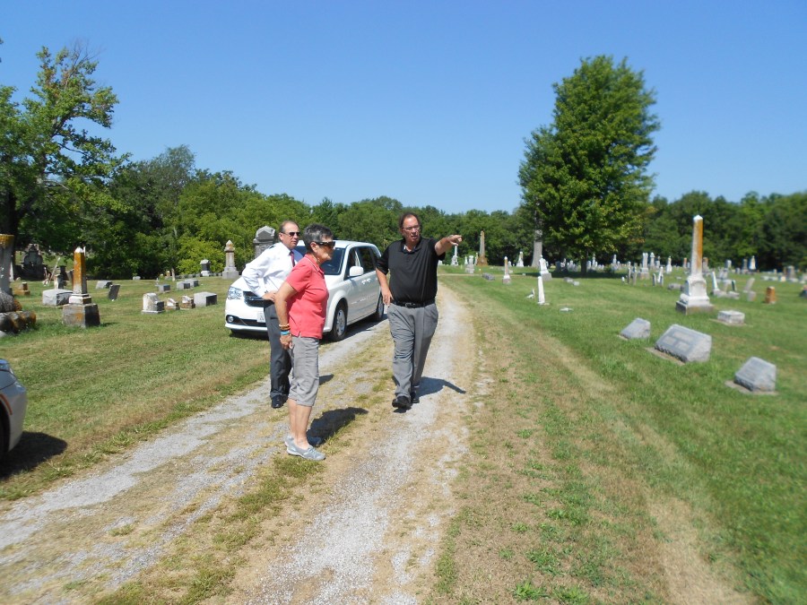 At the Marshall cemetery, Ed Pearce points out where my father’s grave is located.