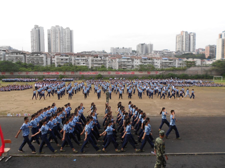 Getting ready for the final showing of what they’ve learned, students prepare to march around the field in front of the leaders. This takes place the last day of their training.