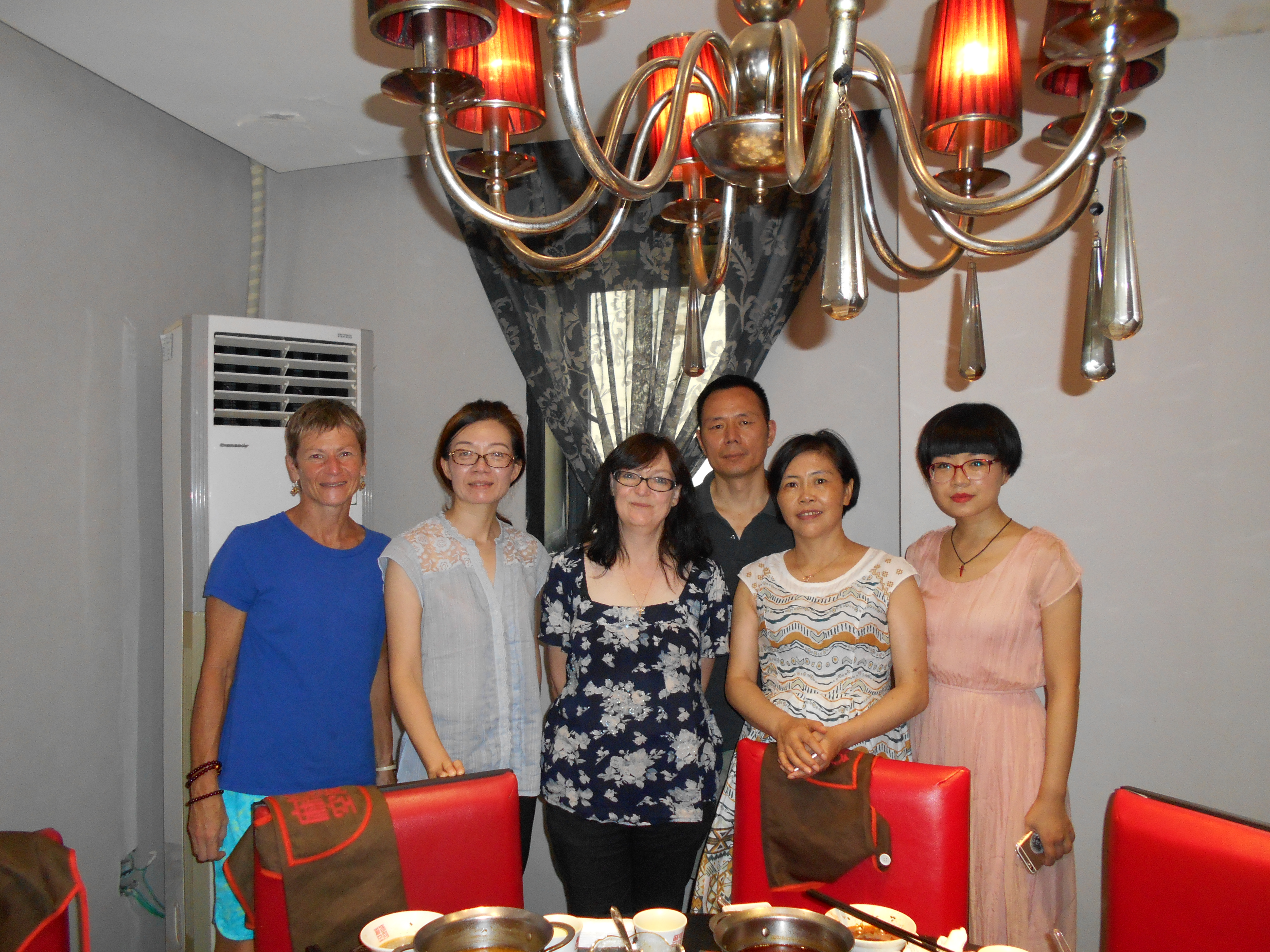 Amity staff and our Luzhou Christian church staff at a farewell luncheon (L-R: Me, Amity Education Director Helen Zhao, new Amity teacher Denise Mountain, Pastor Zhao (behind), Pastor Liao and one of our lay leaders.