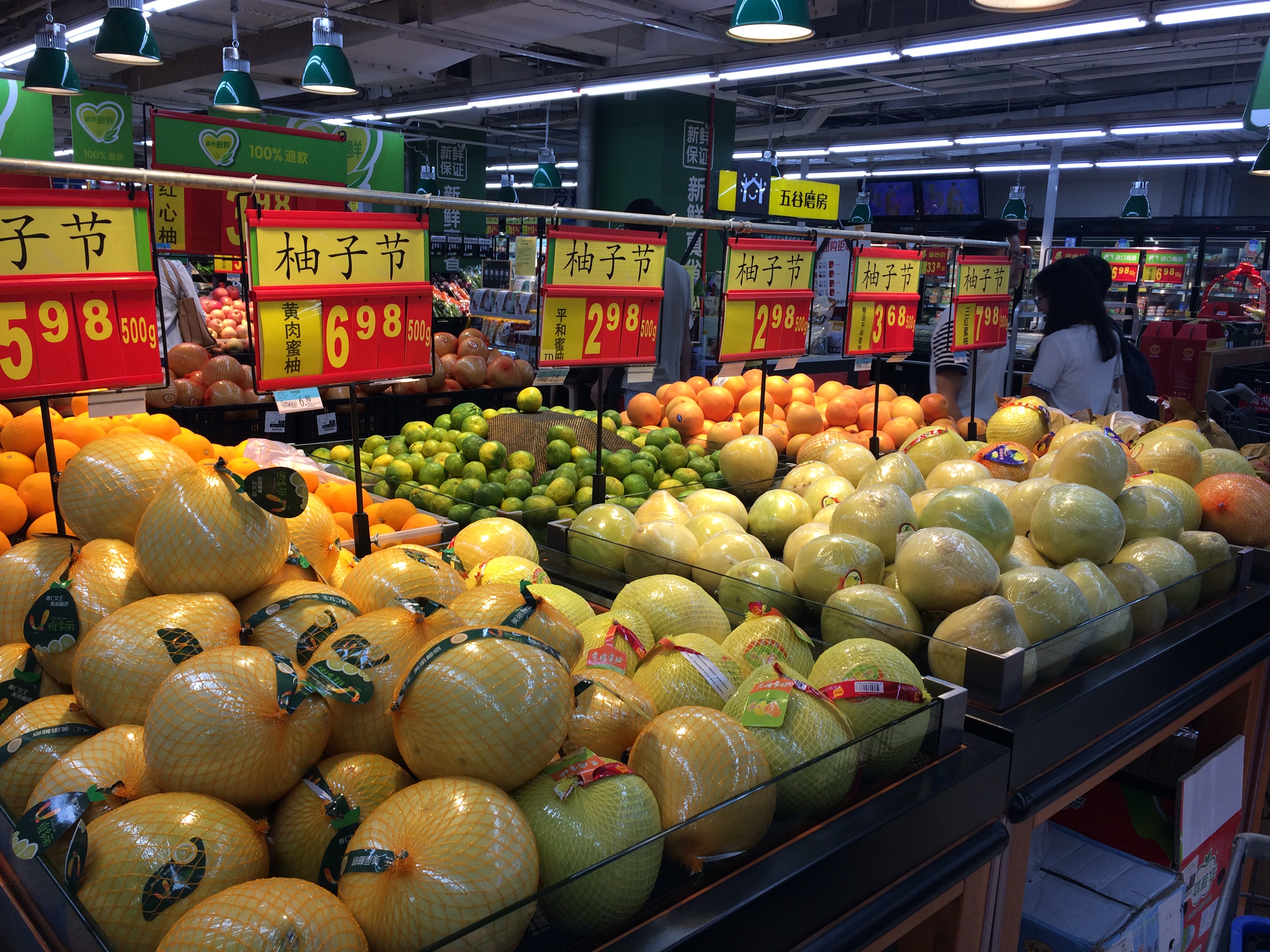 Youzi (Pomelos) are being sold on streets and in groceries throughout China to be eaten during Mid-Autumn Festival night.