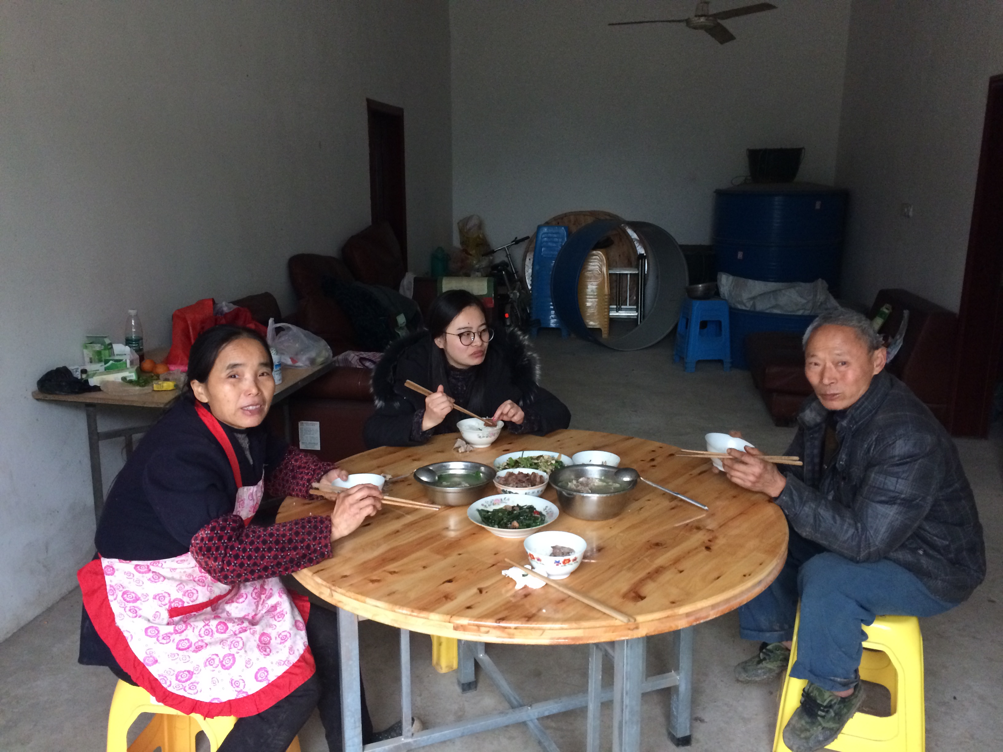 Every visit, Mrs. Chen makes sure we get a home-cooked meal. Here she is with her husband, Che, and Angel
