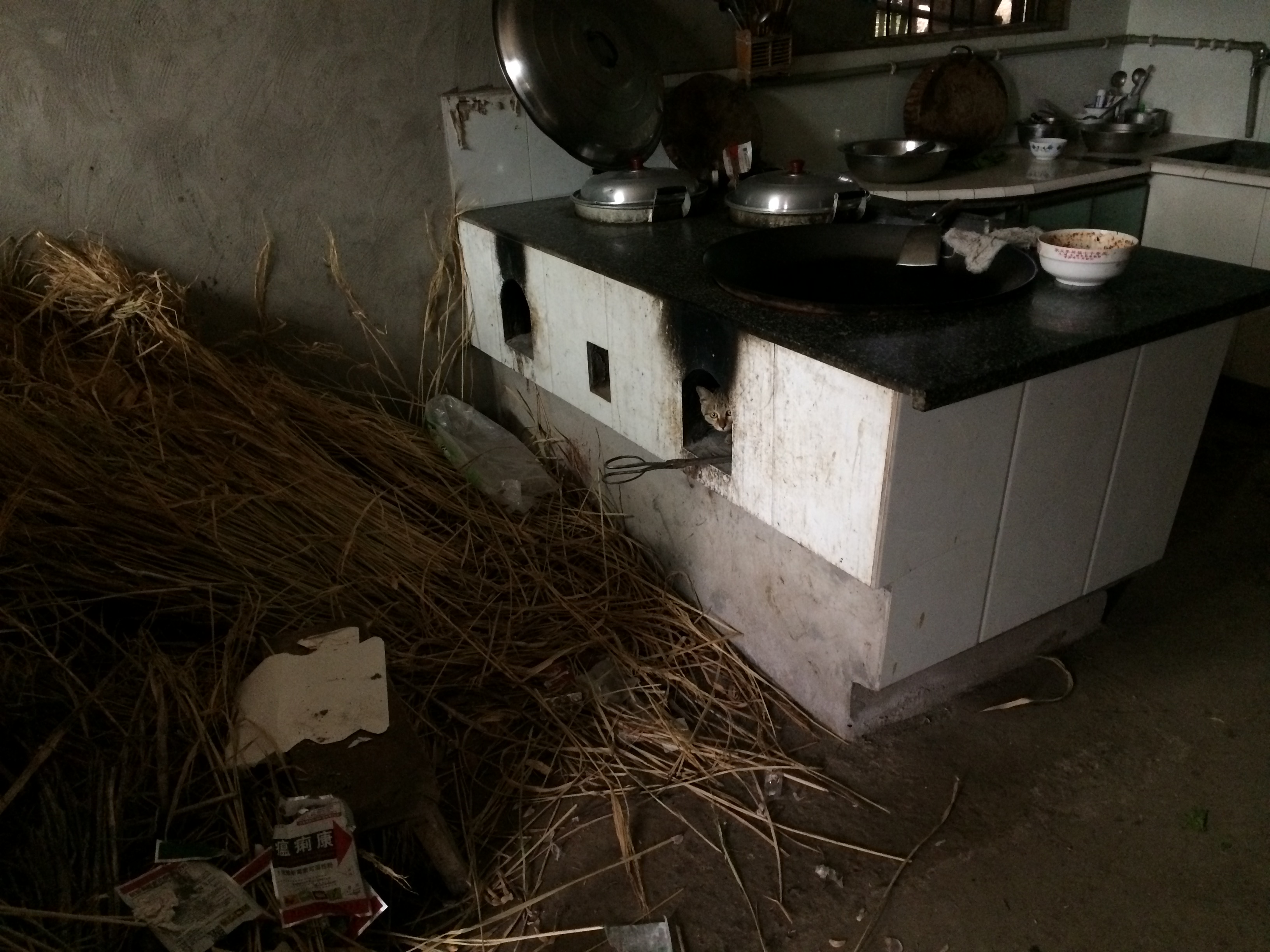 The kitchen is still traditional: kindling is used to stoke the fire for stir-frying meals.
