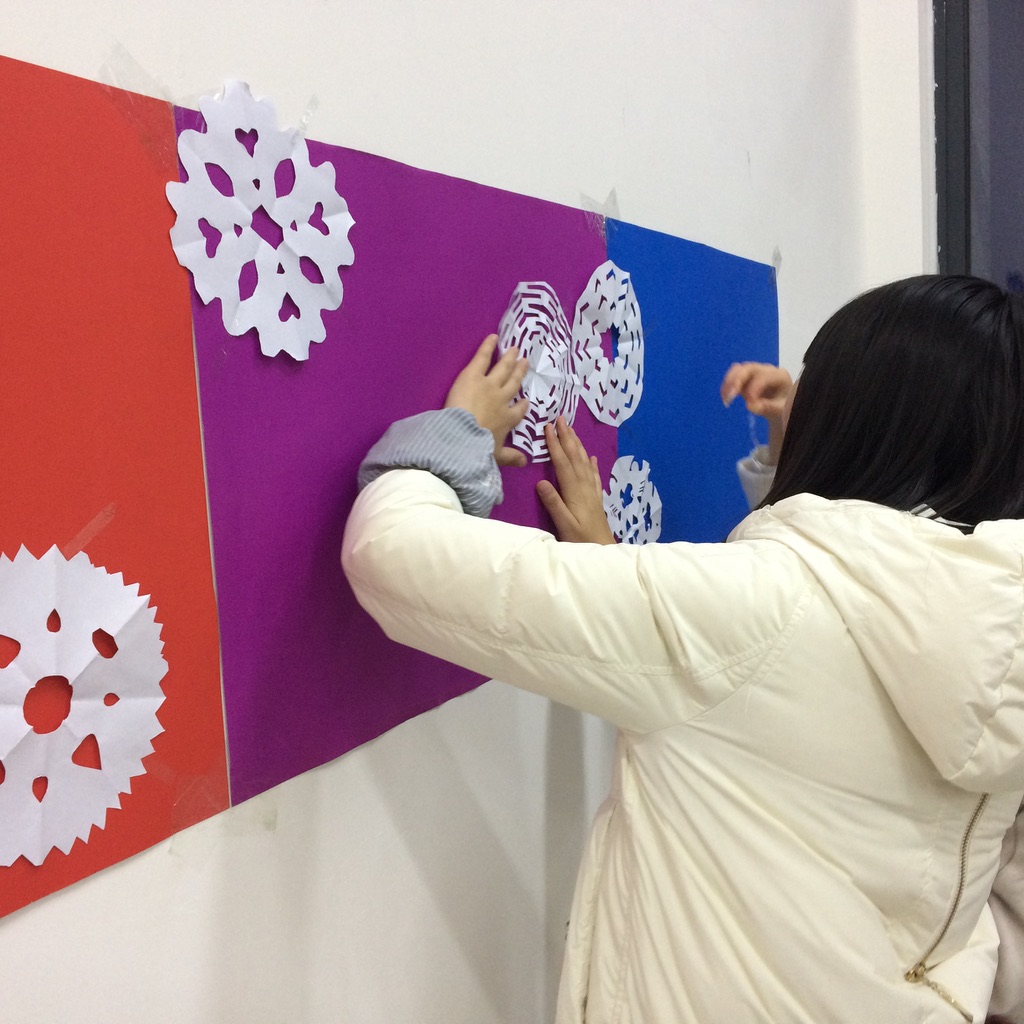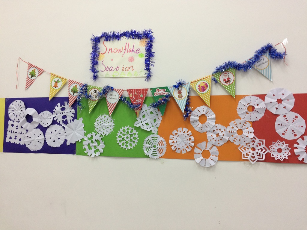 The divisions for the night included: Tree decorating, Picture with Santa Claus and Elves, Gift Wrapping (wrap an apple or orange, label it with a tag and give to someone as a gift), Candy stations (say “Merry Christmas,” “Happy New Year,” and “Happy Holidays” to receive a piece of candy), and making snowflakes.