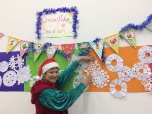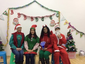 Special Christmas-designed paper was ordered from the Internet, all different colors, along with fun holiday hats for people to wear during photo sessions with our Father Christmases (two) and their helpers.