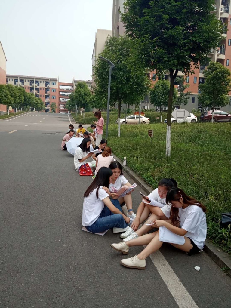 Students quickly moved into the shade of dormitories, seating themselves on curbsides and steps while working.  I spent time walking around to each group, making sure they were on task and answering questions about the final exam.