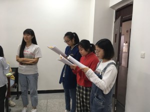Part of my job, being the foreign teacher, is to be on call for those who need extra help.  While some classes choose not to ask for my assistance or advice during practices, others do so this meant that for several weeks, I met with the actors in the evenings or on weekends to go over pronunciation errors and add acting tips and ideas.