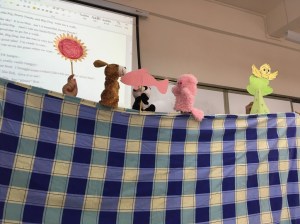 I have a great lesson how to incorporate puppet plays in a young English language learners’ class.  To demonstrate how this can be done, my college students go over a simple script  and then have to perform this using puppets and hand-made props.  Nothing like a humorous puppet play to bring smiles and laughter to a classroom.