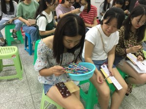 I love having the kids in the room, especially as my students will be elementary and junior high school teachers some day.  This gave them practice in interacting with young learners who had limited English skills but were required to speak in English due to the rules of the Center.  Only English is allowed in this room, and while that might seem a bit strict, it’s amazing how much a person can relay the meaning of English words through gestures, pictures, drawings and facial expressions.  The kids had great fun with this, with old kid visitors telling new ones as soon as they walked in the door: “English!  English!  No Chinese.”