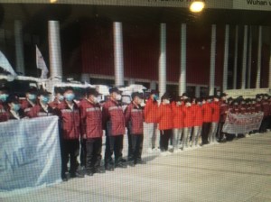 Triumph! In Wuhan, a parade of jubilation takes place as citizens escort visiting healthcare workers to the airport, train and bus stations for their departure from the city. The virus is now under control. All is well.