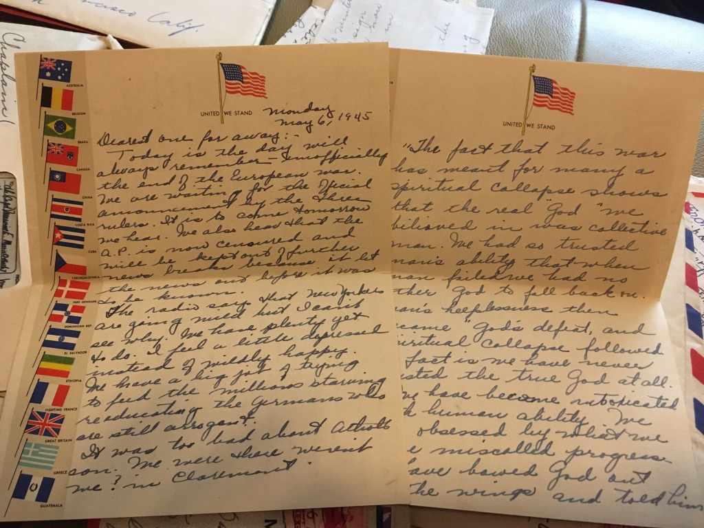 The radio says that New Yorkers are going wild but I can’t see why. We have plenty yet to do. I feel a little depressed instead of wildly happy. We have a big job of trying to feed the millions starving, and re-educating the Germans who are still arrogant.