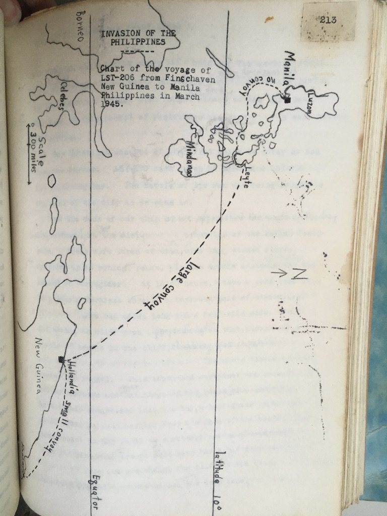 My grandfather’s drawing to illustrate the invasion route, from New Guinea to the Philippines.