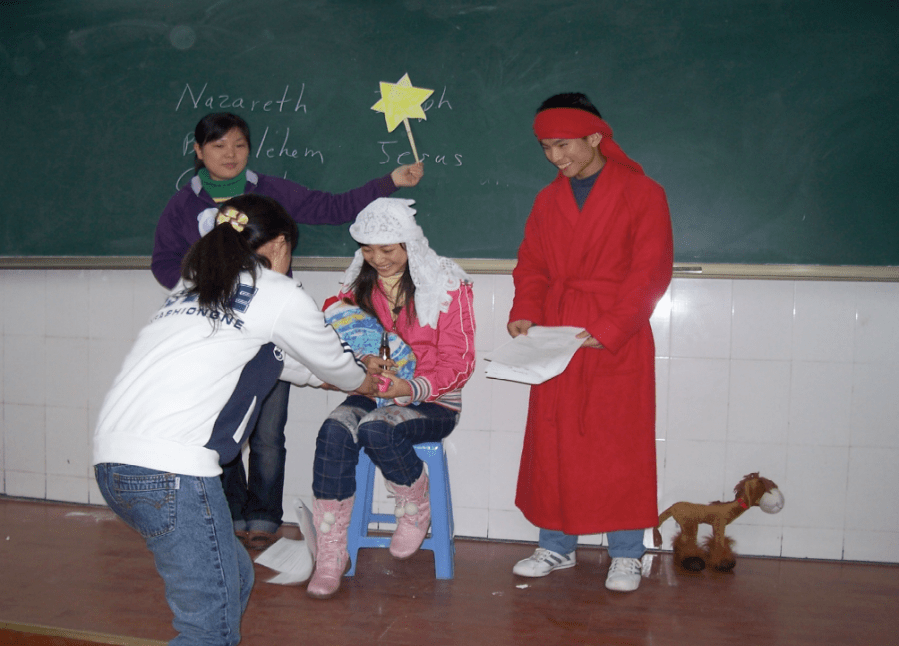 Our culture class had students re-enacting the Christmas Story from my own simplified script I’ve been using for years.