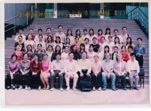 The most recent excitement to hit this group is the school’s request for contact information for a 20th year reunion. Never has my college arranged such an event, so there was some confusion as to what this was all about. Here is the dialogue which took place a few days ago. (Teacher Wang below)