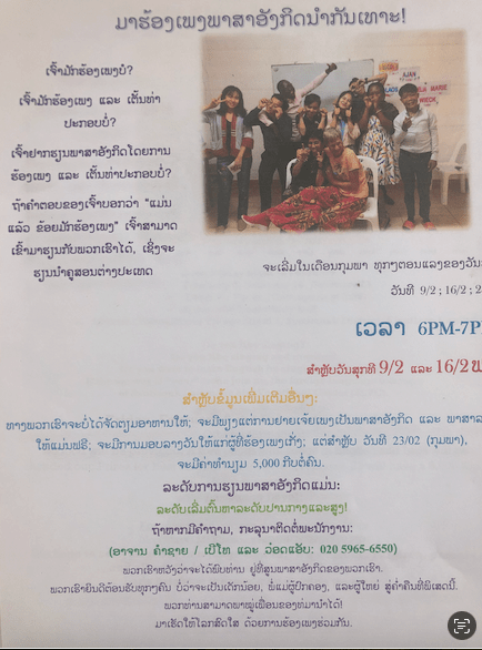 The Center’s upcoming “Let’s Sing in English!” Singing Night: Begins February 9