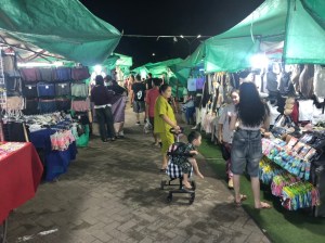 And since we had time, we traipsed about the many rows of sellers and their wares, selling anything from clothing to jewelry to Laos souvenirs to underwear and bras. You name it, the night market has it. And lucky us! No rain.