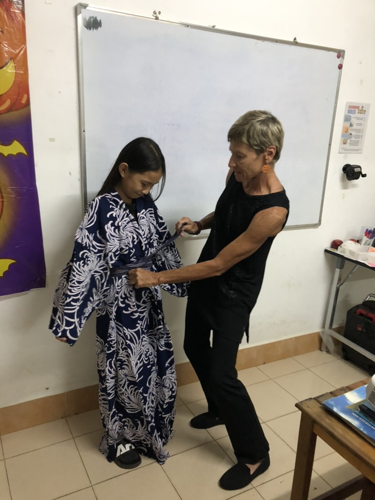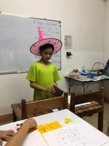 My biggest concern had been Shaloom, an intern with the Global Mission Fellow (GMF) program. His 2-week conference in Tanzania had me and Santi teaching all classes and the adult English Corner for me as well. A combination of classes was required since some levels meet together at the same time. Santi continued with his ABC learners and I combined lower and higher elementary to create a 3-week Halloween unit. Junior High’s Halloween lessons, those students being a tad higher level with teenager attitudes, were tweaked to meet their “We are not children. We are adults” mindset.