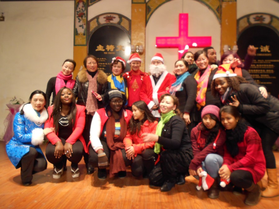 Our evening over, it’s time for pictures with Santa. Of course, the foreigners have to get in on this one.